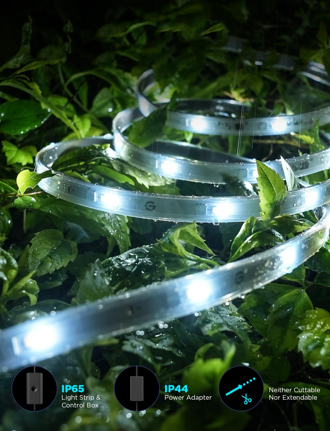 Зробіть ваші патіо, карнизи, сади та інші відкриті простори яскравішими за допомогою наших вдосконалених зовнішніх світлодіодних стрічок Govee RGBICWW. Перетворіть свій Хелловін або Різдво, не змінюючи світло вручну. Додавання теплих і холодних білих світлодіодів можна налаштувати для освітлення безпеки або щоденного освітлення, коли ви повертаєтеся додому.
