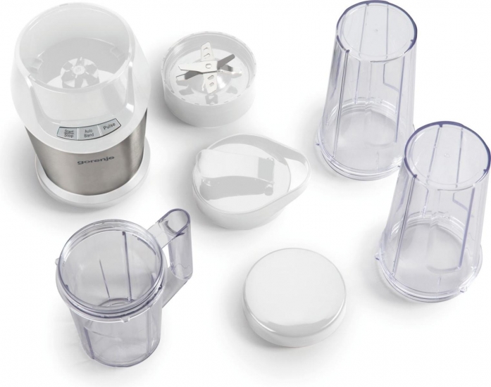 Блендер Gorenje стаціонарний 1000Вт, чаша-750мл, подрібнювач, білий-нерж