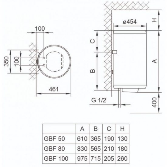 | Обсяг ємності для води | 50 л (47.1 л - об'єм накопичення) |