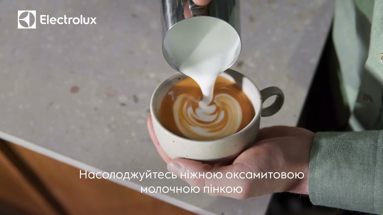 Опис Кавоварка Electrolux ріжкова, 3л, зерно+мелена, ручний капуч, кавомолка, підігрів чашок, подача гар. води, чорний