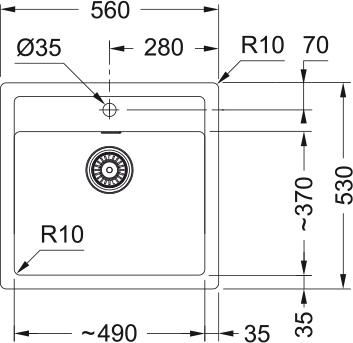 Franke Мойка кухонная Sirius тектонайт, прямоуг., без крыла, 560х530х200мм, чаша - 1, врезная, белый