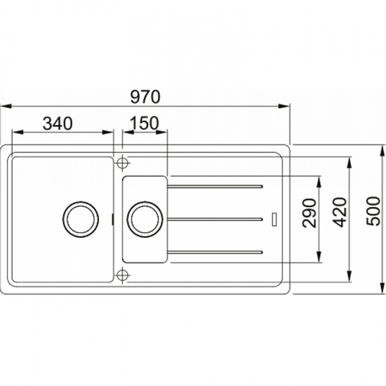 Головна - Побутова техніка, інструменти та товари для дому - Сантехніка - Кухонні мийки - Franke - Мийка кухонна Basis фраграніт, прямокут., з крилом, 970х500х200мм, чаша - 2, врізна, онікс