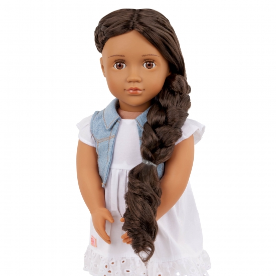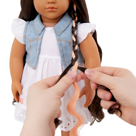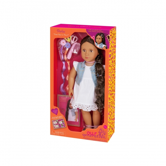 Відкрийте світ фантазії та стилю разом із Перлою від Our Generation! Ця чарівна 46-сантиметрова лялька має надзвичайно довге темно-каштанове волосся, яке можна розчісувати, заплітати та укладати в безліч модних зачісок. А головна особливість — її косу можна подовжити або вкоротити одним натисканням кнопки!
