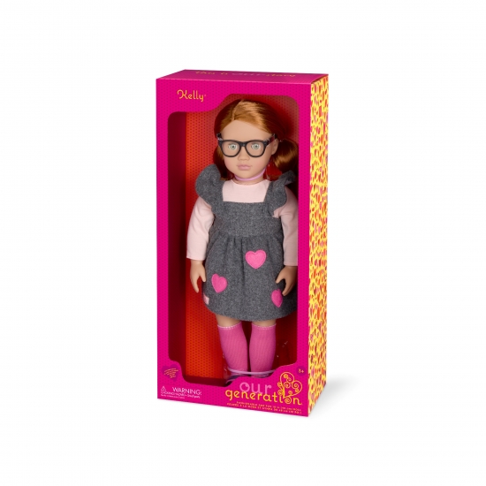 Келлі – чарівна 46-сантиметрова лялька Our Generation, яка готова до нових шкільних пригод! Її м’яке тіло робить гру комфортною та приємною, а реалістичні риси дарують ще більше радості маленьким шанувальникам ляльок. Келлі має яскраво-блакитні очі, які відкриваються та закриваються, та довге руде волосся, яке можна розчісувати та укладати у стильні зачіски.