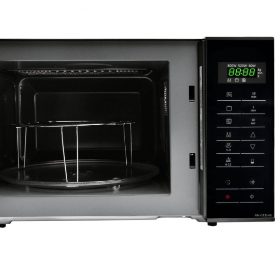 Мікрохвильова піч Panasonic NN-GT35HBZUE — це поєднання потужності, функціональності та елегантного дизайну. З об'ємом 23 літри та потужністю мікрохвиль 800 Вт, вона ідеально підходить для щоденного використання. Додатковий гриль потужністю 1000 Вт дозволяє приготувати страви з хрусткою скоринкою, надаючи їм апетитного вигляду та смаку.