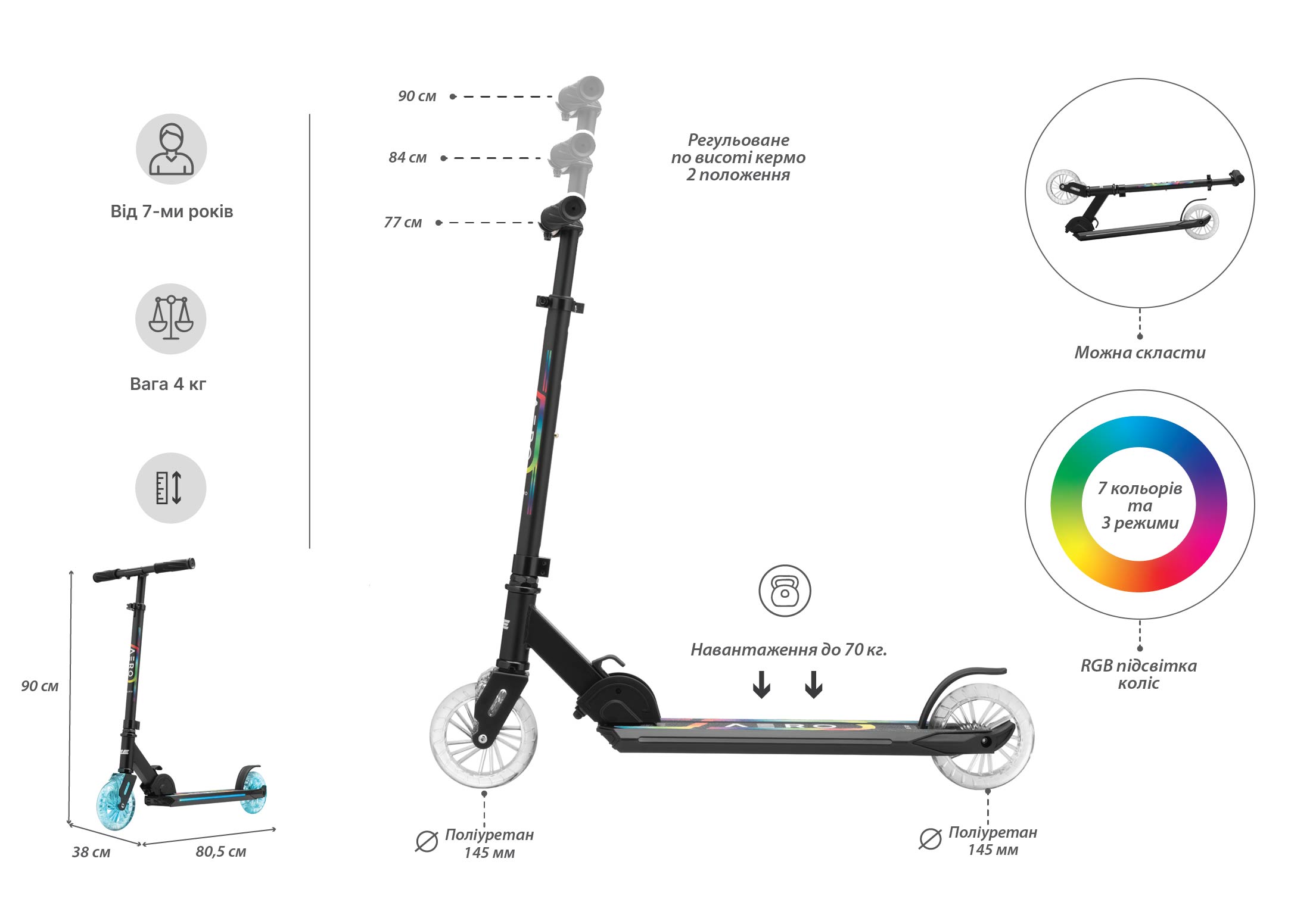 Дитячий самокат 2E Aero MAX RGB (AERO-145-RGB)