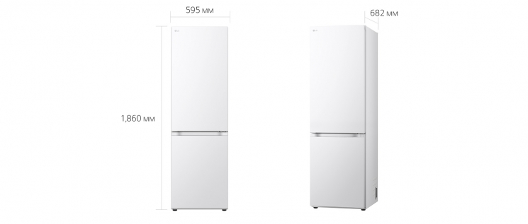 Холодильник LG з нижн. мороз., 186x60х68, холод.відд.-234л, мороз.відд.-107л, 2дв., А++, NF, інв., диспл внутр., зона св-ті, білий