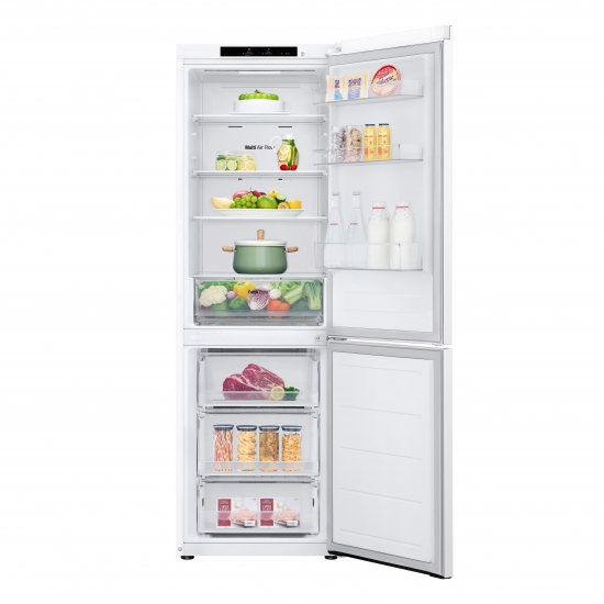 Холодильник LG GW-B459FVLW з нижньою морозильною камерою — це надійне рішення для вашої кухні. Завдяки інверторному компресору, системі Total No Frost та функції DoorCooling+ продукти залишаються свіжими довше. Внутрішній об’єм 341 л з оптимально організованим простором, зона свіжості та зручні загартовані скляні полиці. Має клас енергоефективності A++, рівень шуму всього 35 дБ та стильний білий корпус з прихованою ручкою.