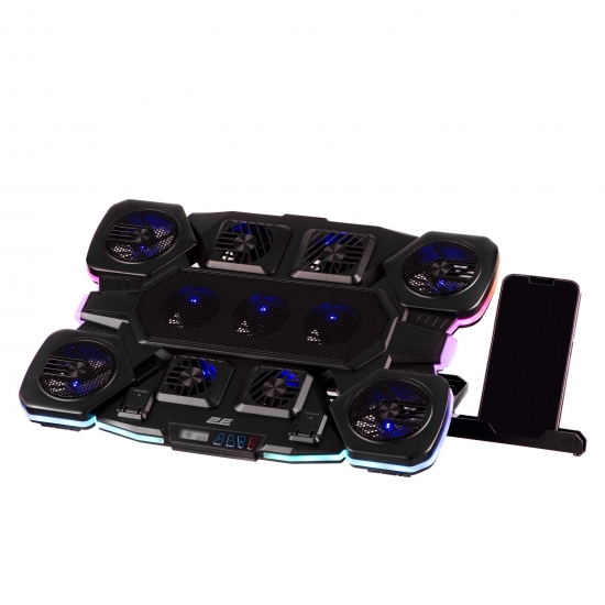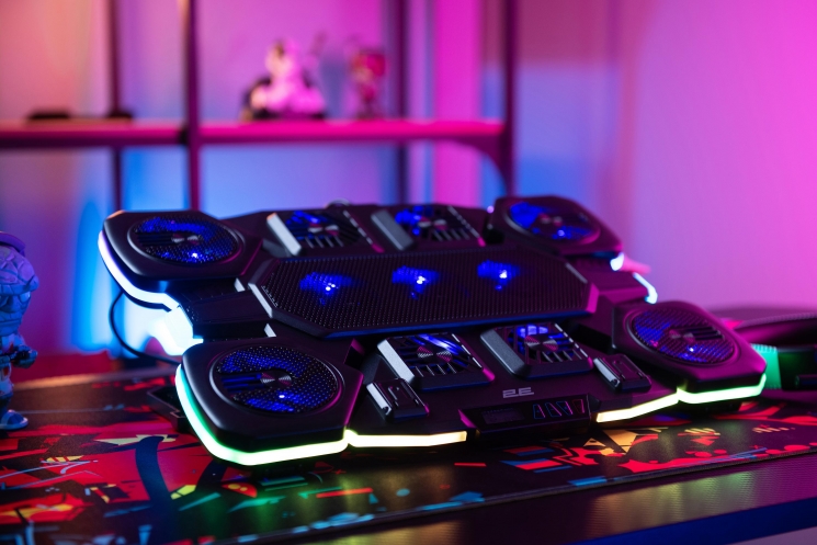 Підставку 2E GAMING Cooling Pad CPG-011 оснащено 11 вентиляторами різного розміру зі швидкістю обертання до 2 800 об/хв. Завдяки поєднанню великих (діаметром 70 × 70 × 15 мм – 4 шт.) і малих вентиляторів (50 × 50 ×15 мм – 2 шт., 60 × 60 ×15 мм – 5 шт.) забезпечено рівномірне охолодження всієї поверхні ноутбука та оптимальну температуру навіть у разі великих навантажень, як-то ігрові сесії, відеомонтаж або виконання складних професійних завдань.