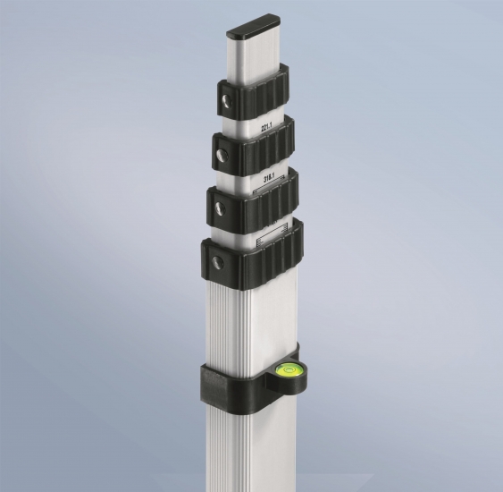 Рейка складається з декількох секцій, які легко висуваються і фіксуються для надійності вимірювань.