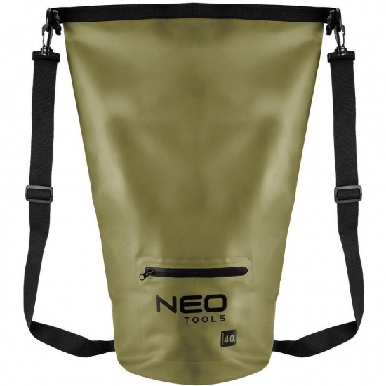 Водонепроникна сумка з ПВХ об'ємом 40 л 63-162 від NEO TOOLS - це продукт 2-в-1, що дозволяє використовувати її як практичну сумку і рюкзак, завдяки наявності двох знімних регульованих ременів. Сумка характеризується щільним закриттям основної кишені шляхом згортання та фіксації застібкою-пряжкою. Рюкзак-сумка NEO TOOLS 63-162 підходить для туристів, рибалок, любителів водних видів спорту та всіх, хто потребує надійного захисту своїх речей від вологи під час активного відпочинку або подорожей.