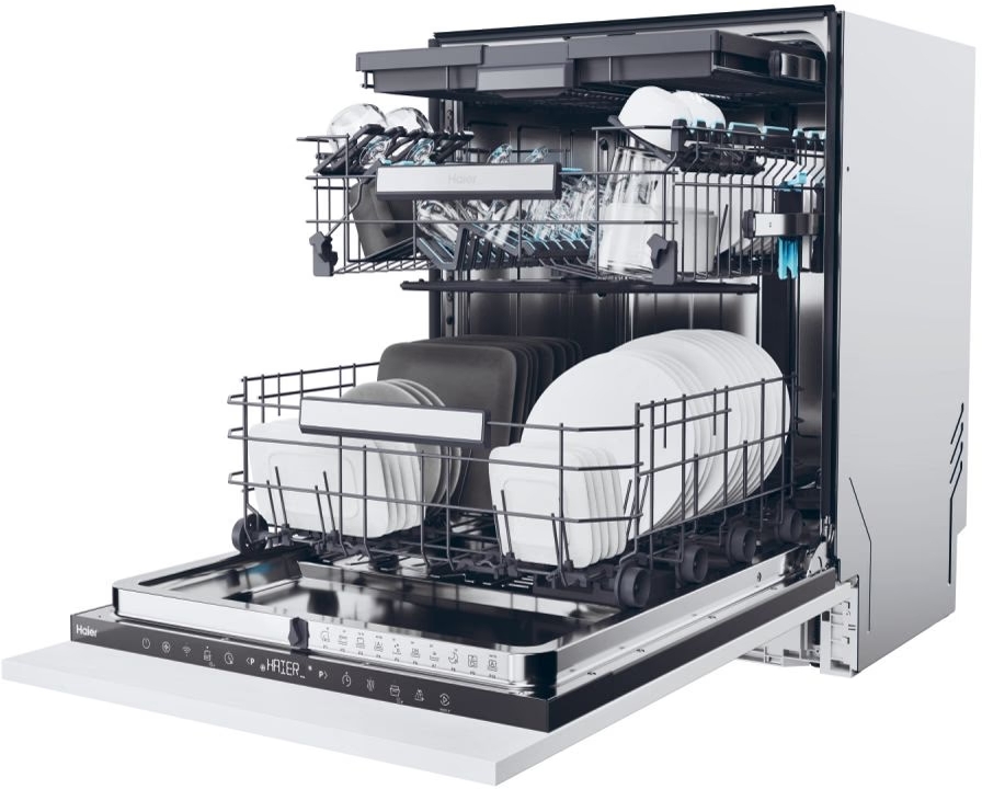 Опис Посудомийна машина Haier вбудована, 16компл., A+++, 60см, дисплей, інвертор, 3й кошик, білий