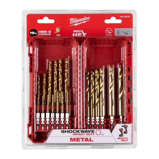 Набір свердел по металу Milwaukee RedHEX Shockwave HSS-TiN, 19шт (4932493866)