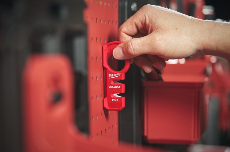 Особливості товару Точилка для ножів і ножиць Milwaukee, 54х195х38мм, 2 етапи заточування, ABS-пластик