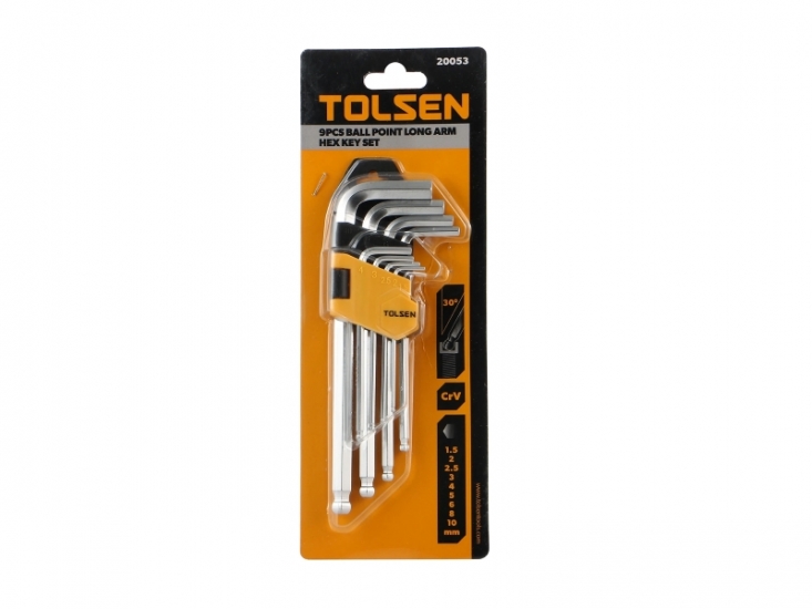 Шестигранні закруглені ключі Tolsen призначені для закручування/відкручування кріпильних елементів (гвинтів, гайок, шурупів) з внутрішнім шестигранником в перетині. Фаскований торець короткого плеча забезпечує зручну експлуатацію при роботі в місцях з обмеженим простором.