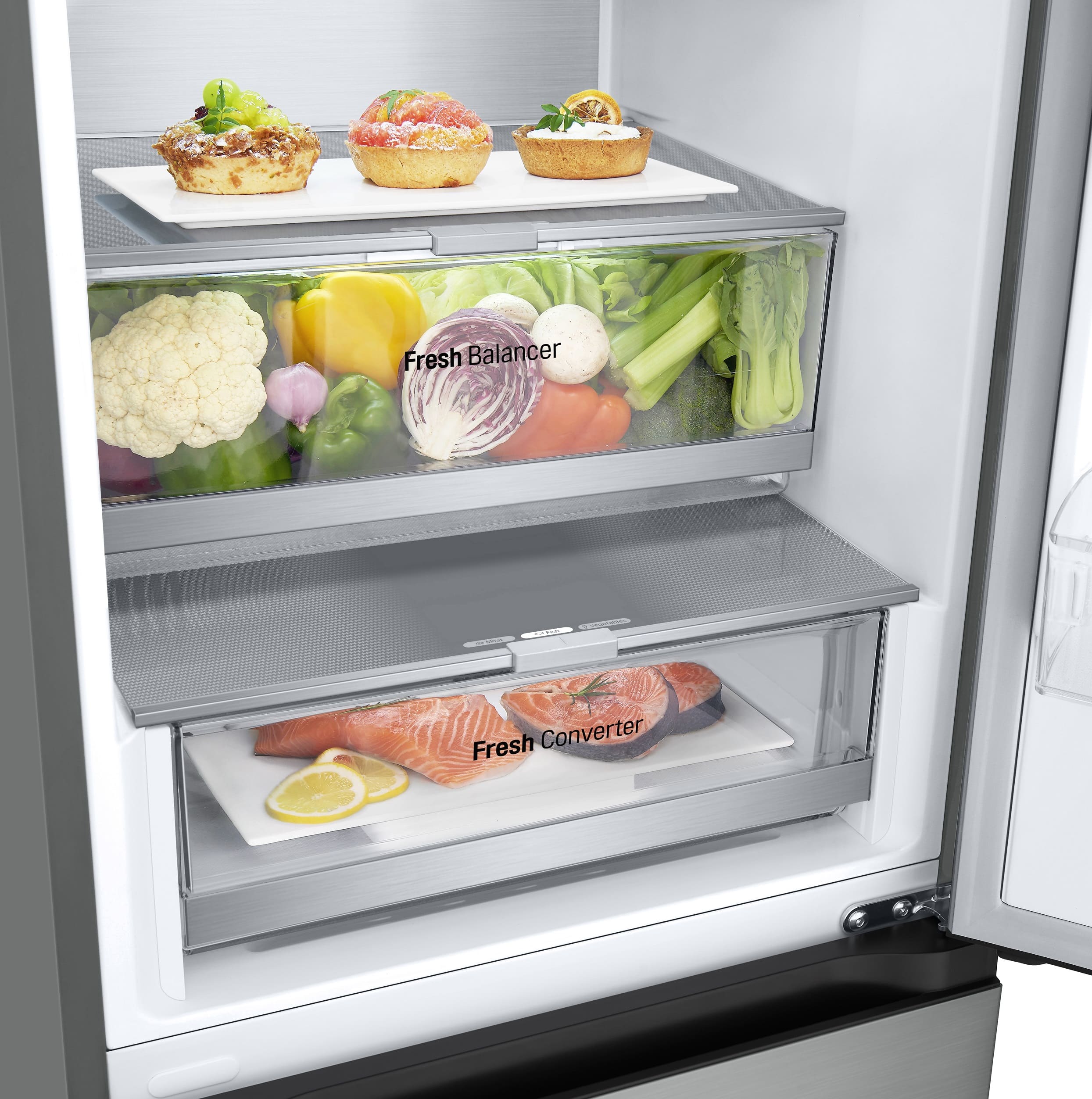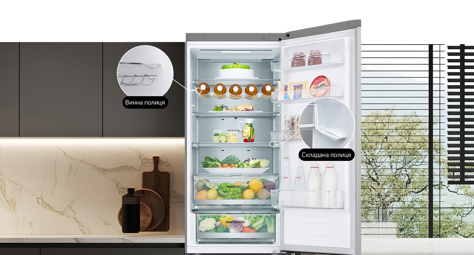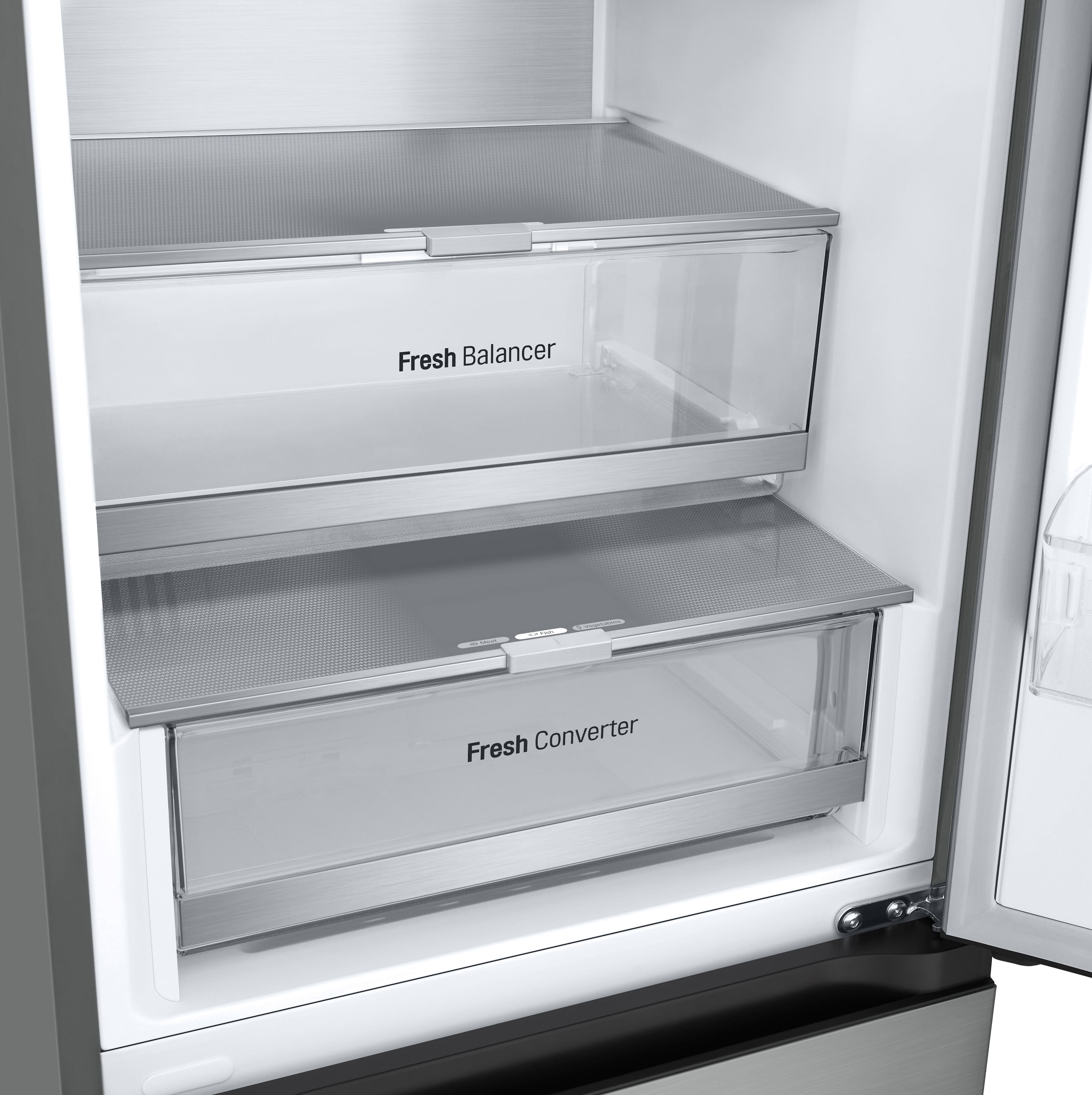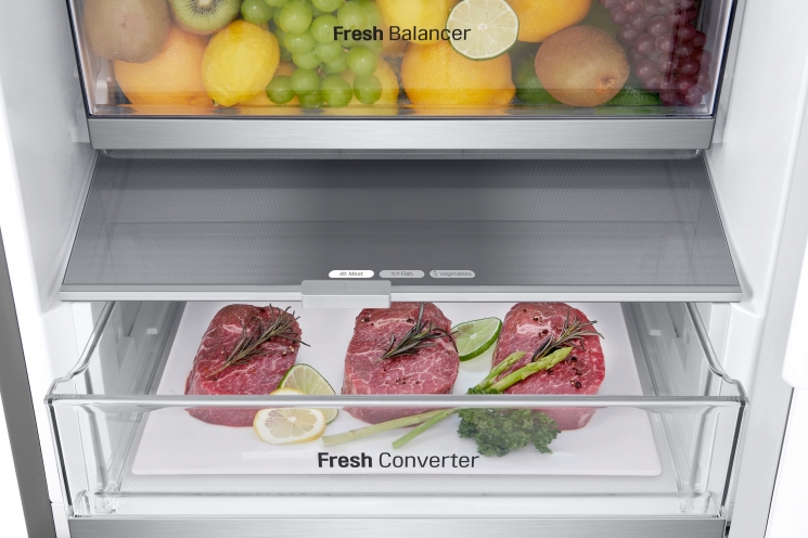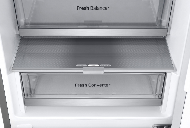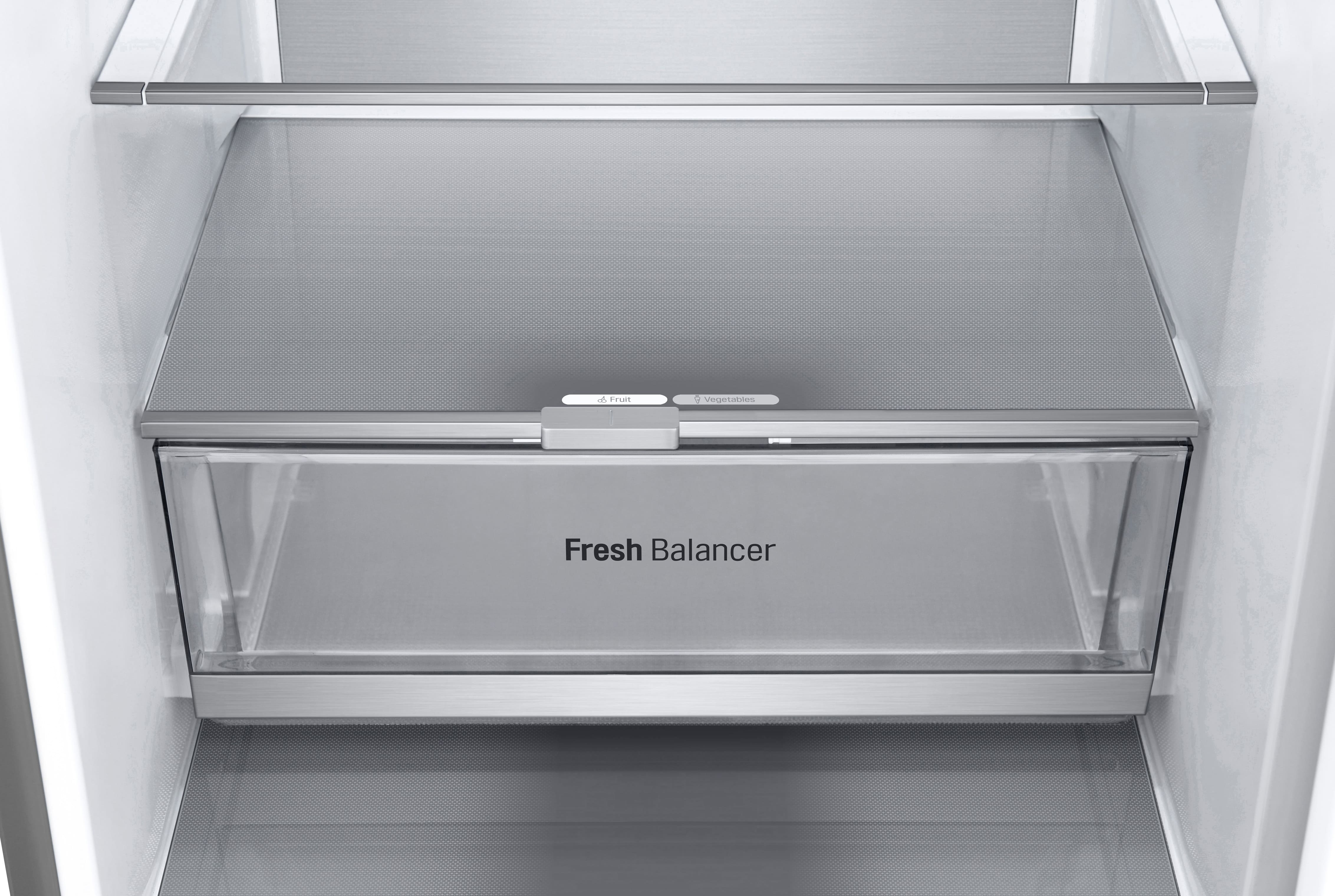 Тип: холодильник з морозильником, холодильник двокамерний; Клас енергоспоживання: A++; Управління: електронне; Загальний об'єм: 324 л; Об'єм холодильної камери: 215 л; Об'єм морозильної камери: 109 л; Розташування морозильної камери: знизу; Функціональні можливості: Швидка заморозка, Захист від дітей, Швидке охолодження, Режим відпустки, Сигналізація двері, Нульова зона, Режим «Еко», вентиляція (активна); Колір: сріблястий, метал; Габарити (ВхШхГ): 186x59.5x66.5;