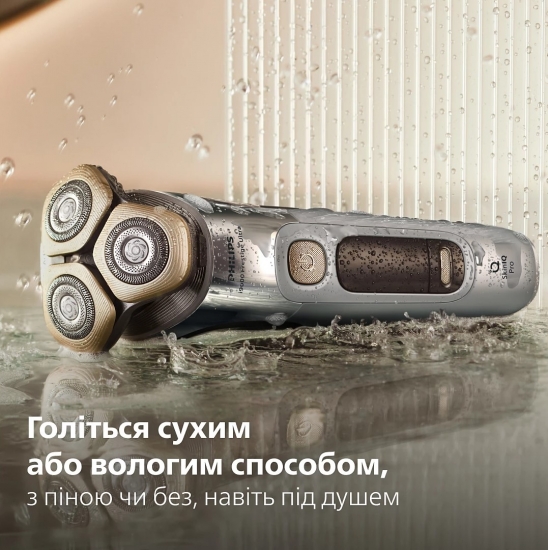 Адаптуйте режим гоління до своїх потреб. Наша бритва на 100% водонепроникна, тому ви можете обрати комфортне сухе гоління або освіжаюче вологе. Ви також можете голитися з гелем чи піною, навіть у душі.