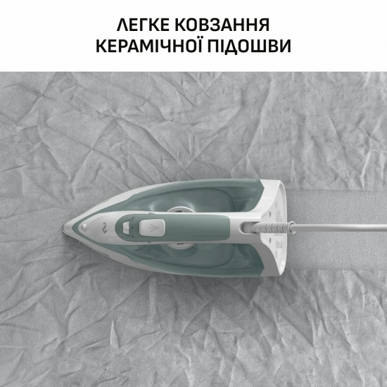Tefal Праска Virtuo 30, 2000Вт, 240мл, паровий удар -120гр, постійна пара - 27гр, керам. підошва, біло-зелений