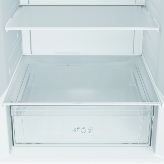 Beko RCSA270K40WN — компактний двокамерний холодильник з нижньою морозильною камерою та загальним об’ємом 262 л. Статична система охолодження та технологія MinFrost зменшують утворення льоду в морозильній камері та скорочують частоту розморожування. Усередині розміщено LED-освітлення та скляні полиці підвищеної міцності. Формат і габарити зручні для розміщення на невеликих кухнях, холодильник працює тихо та має реверсивні дверцята для комфортного встановлення.