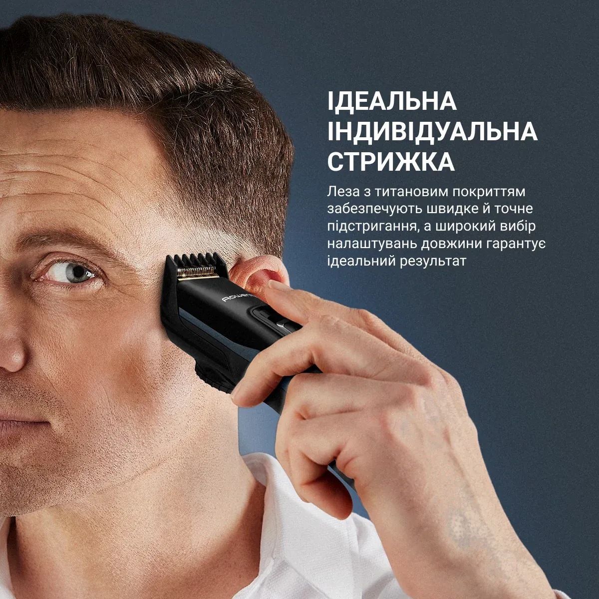 Rowenta Машинка для стрижки Advancer, для бороди, вусів, голови, мережа+акум., роторний мотор, насадок-3, кейс, титан.напил., темно-синій
