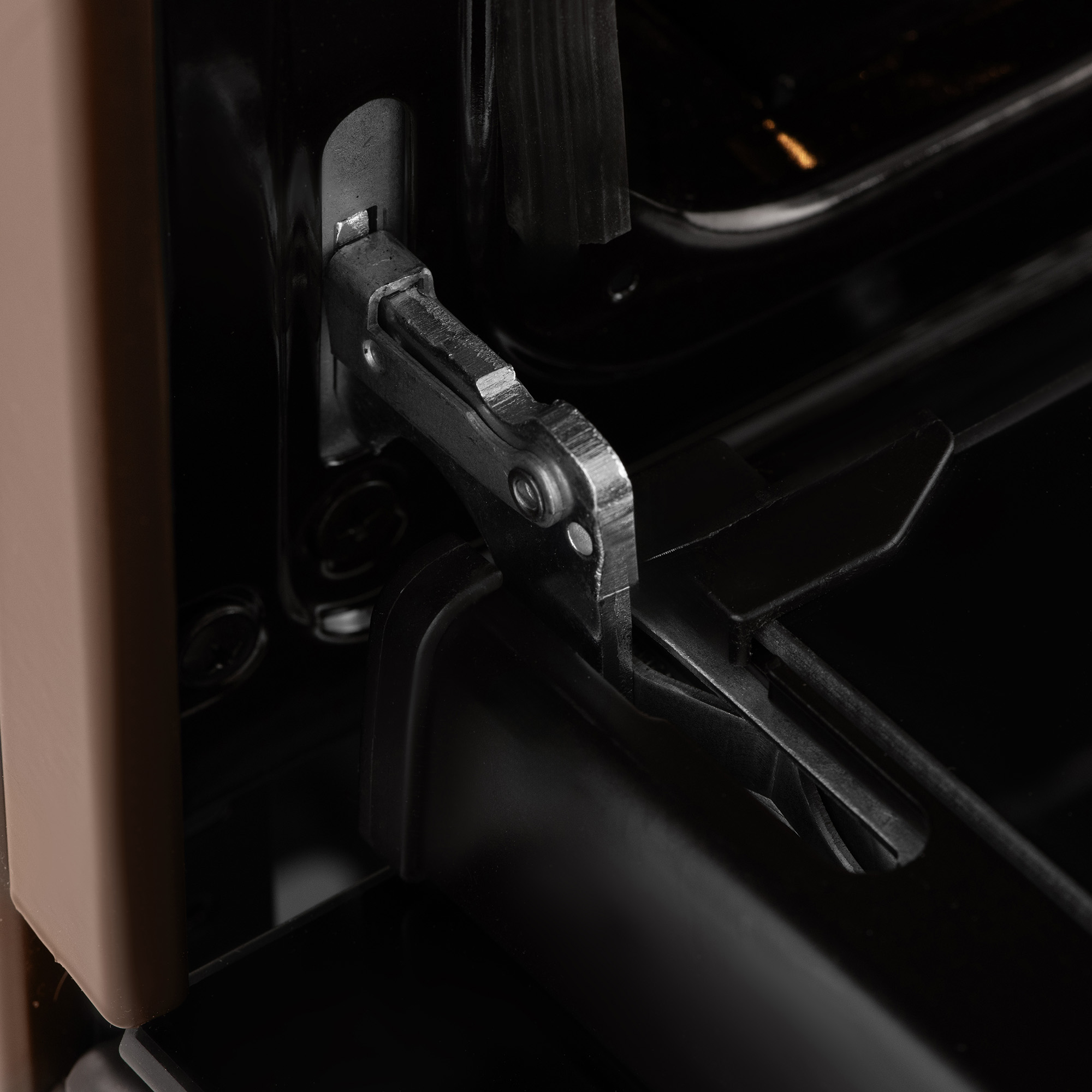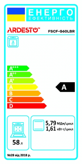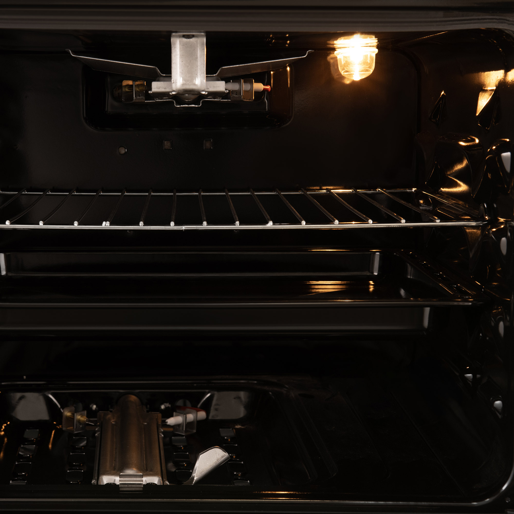 Газова духова шафа має об’єм 58 л і два нагрівальні елементи – нижній 2,75 кВт і верхній 2,2 кВт. Завдяки п’ятьом рівням рельєфних напрямних можна регулювати відстань до джерел тепла, розміщуючи страви на оптимальній висоті для рівномірного готування – від хрустких круасанів до запеченого м’яса.