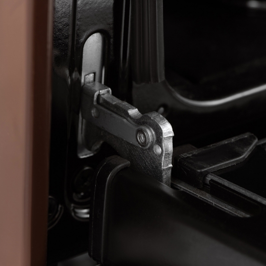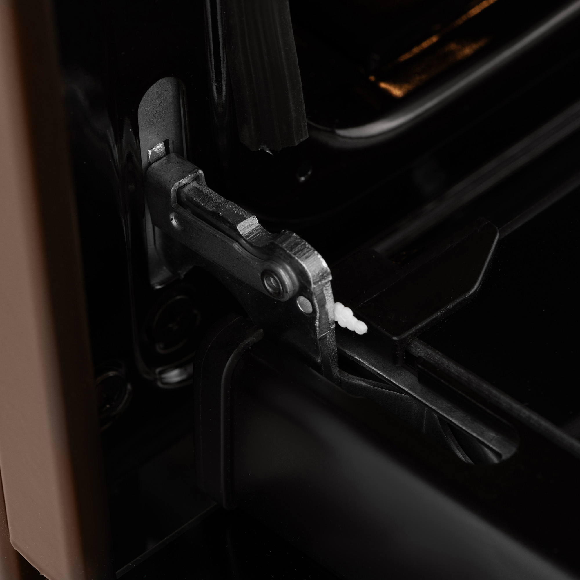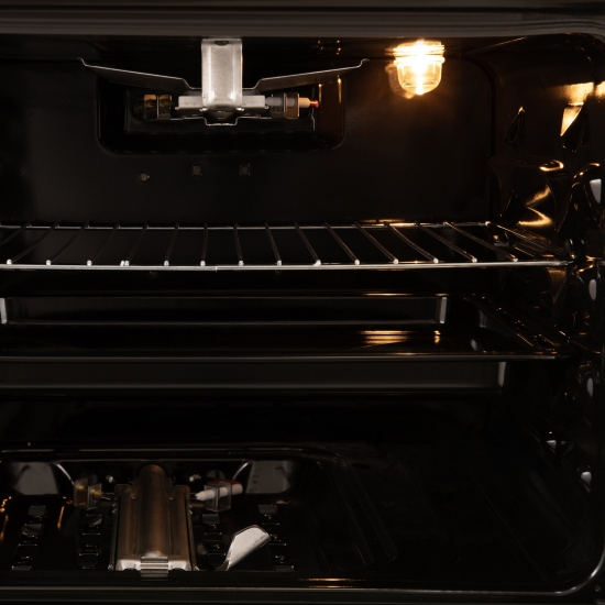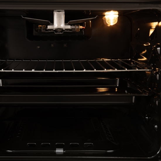 Внутрішню камеру вкрито емаллю легкого очищення, що спрощує догляд. Вбудоване підсвічування дає змогу контролювати процес готування без потреби відчиняти дверцята. Дверцята мають два термостійкі стекла, які утримують тепло всередині, сприяючи енергоефективності й підвищуючи безпеку. Крім того, конструкцією передбачено можливість зняти внутрішнє скло дверцят, тож очистити плиту після готування – не проблема. Для зручності є механічний таймер та аналоговий термометр – традиційні, але надійні помічники для точного контролю кулінарних процесів.