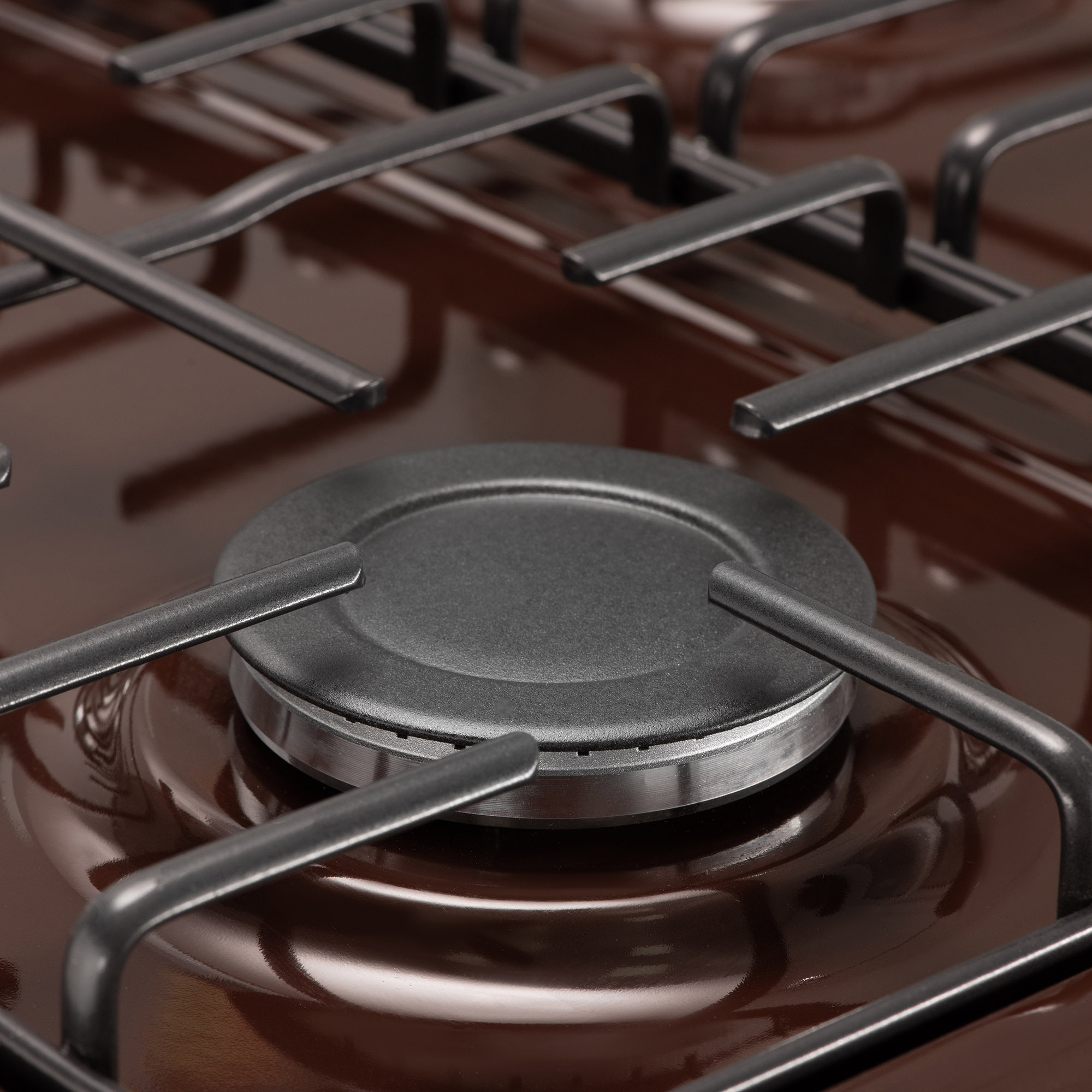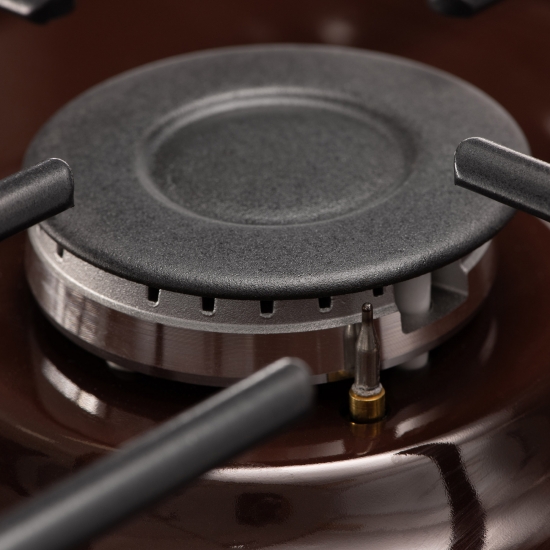 Плита має чотири газові пальники, які розміщено з урахуванням ергономіки та зручності користування. Швидкий пальник потужністю 2,6 кВт згодиться для інтенсивного нагрівання, зокрема швидкого кип’ятіння чи обсмажування. Два напівшвидкі пальники 1,55 кВт кожен оптимальні для щоденного готування, тоді як допоміжний 0,9 кВт – маст-хев для повільного тушкування або заварювання кави.