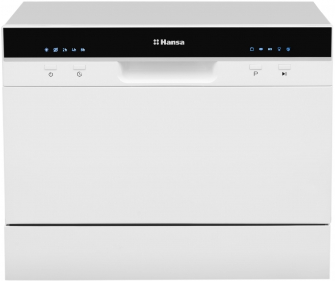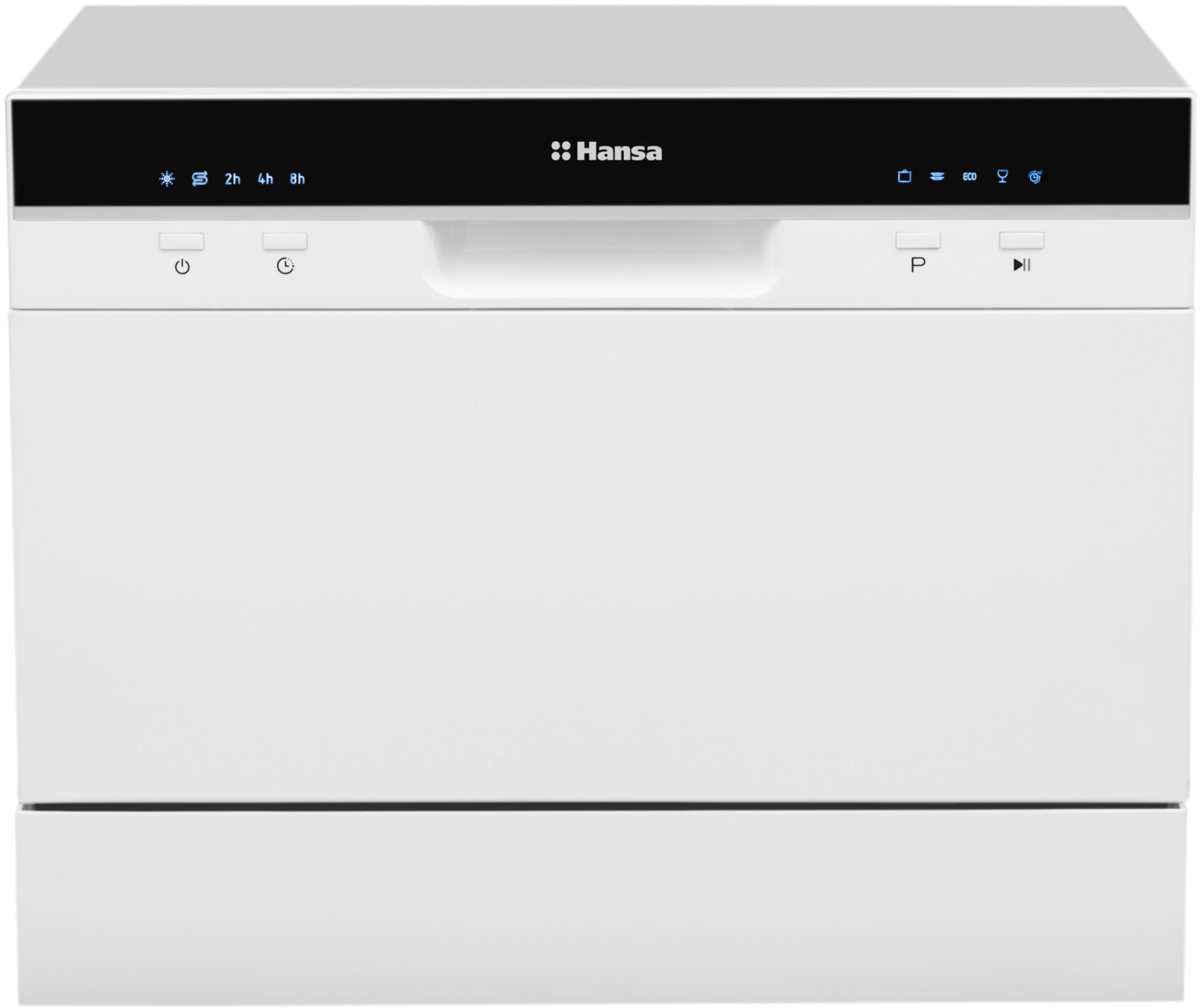 Hansa ZWM556SH — компактна посудомийна машина, яка поєднує стильний дизайн і високу функціональність. Завдяки місткості на 6 комплектів посуду та 5 програмам миття, включаючи інтенсивну, економну та делікатну для скла, вона забезпечує ефективне очищення при мінімальних витратах води — лише 6,5 л за цикл. Конденсаційна сушка, електронні індикатори солі та ополіскувача, а також таймер відстрочки старту на 2, 4 або 8 годин додають зручності у використанні. Сріблястий корпус і білий дисплей надають пристрою сучасного вигляду, а рівень шуму в 49 дБ гарантує тиху роботу. Енергоефективність класу A+ дозволяє економити електроенергію без шкоди для якості миття.