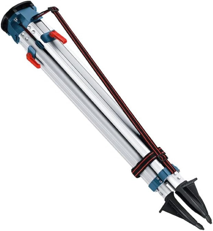 Алюмінієвий штатив (різьблення 1/4 ") відрізняється легкою і, разом з тим, міцною конструкцією. Телескопічні ніжки з блокаторами-зажимами, а також регульована головка забезпечують високу стабільність, штатив дозволяє встановлювати прилад на висоті до 150 метрів. Є ампула для вирівнювання головки по горизонталі. швидкоз'ємні з'єднання з гумовим покриттям додатково підвищує стабілізацію і захищає приєднуються прилади від подряпин. Штатив можна використовувати для роботи з дальномерами, перехресними лазерами і будівник площин.