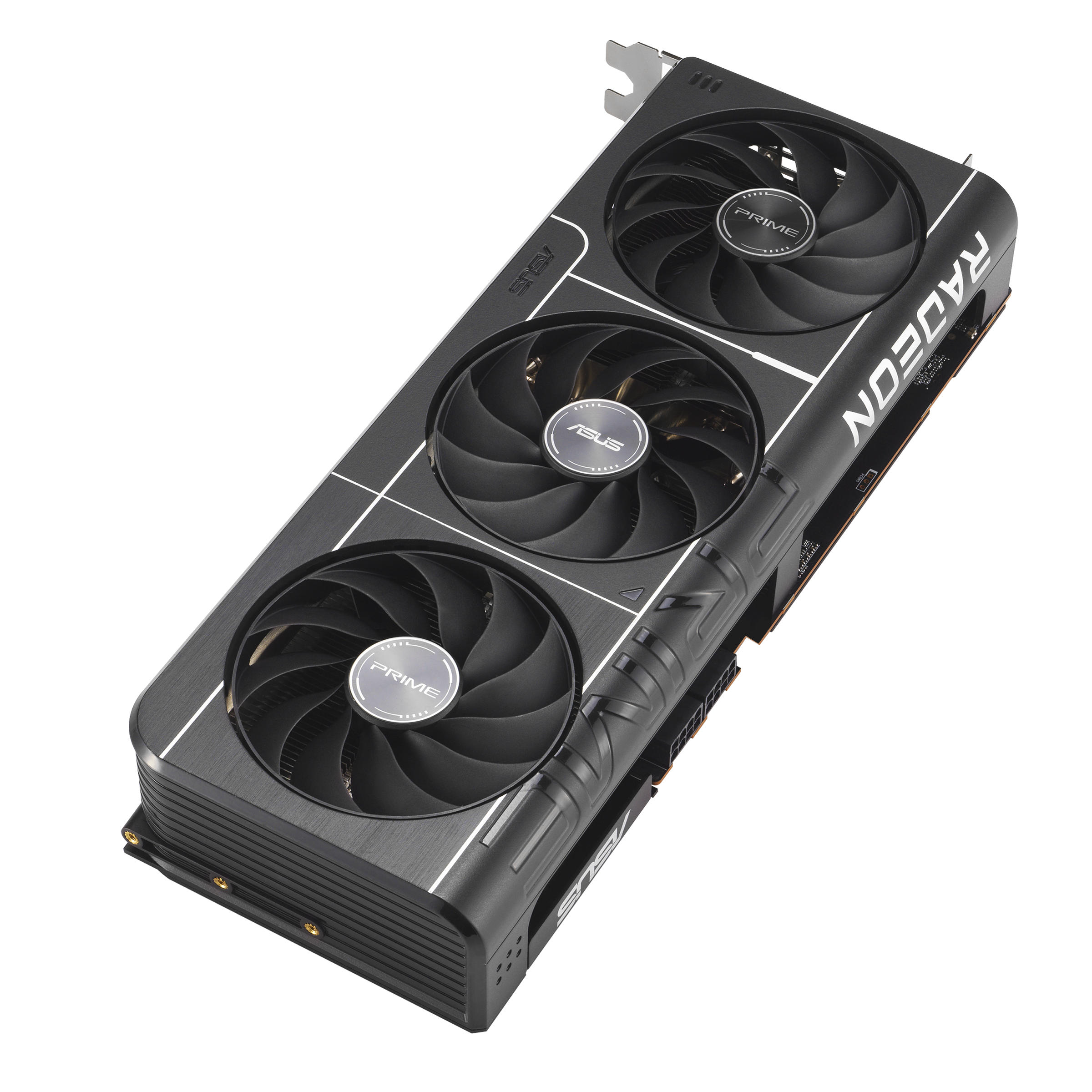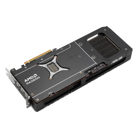 Prime Radeon RX 9070 має 2,5-слотову конструкцію з ретельно продуманим розташуванням кожуха, радіатора та теплових трубок, що дозволяє трьом вентиляторам Axial-tech ефективно використовувати вентиляцію бічних панелей корпусу та забезпечувати оптимальну теплову продуктивність.