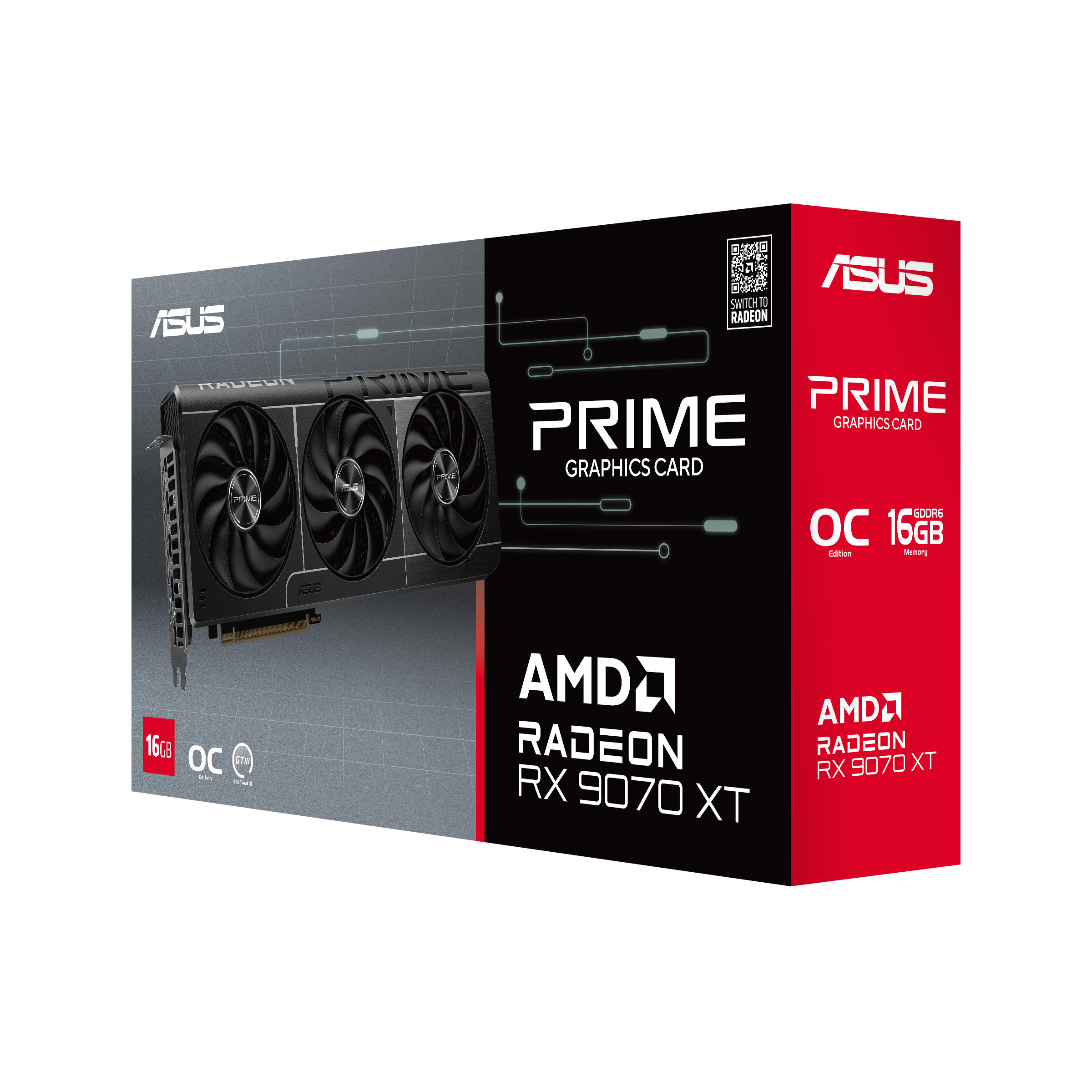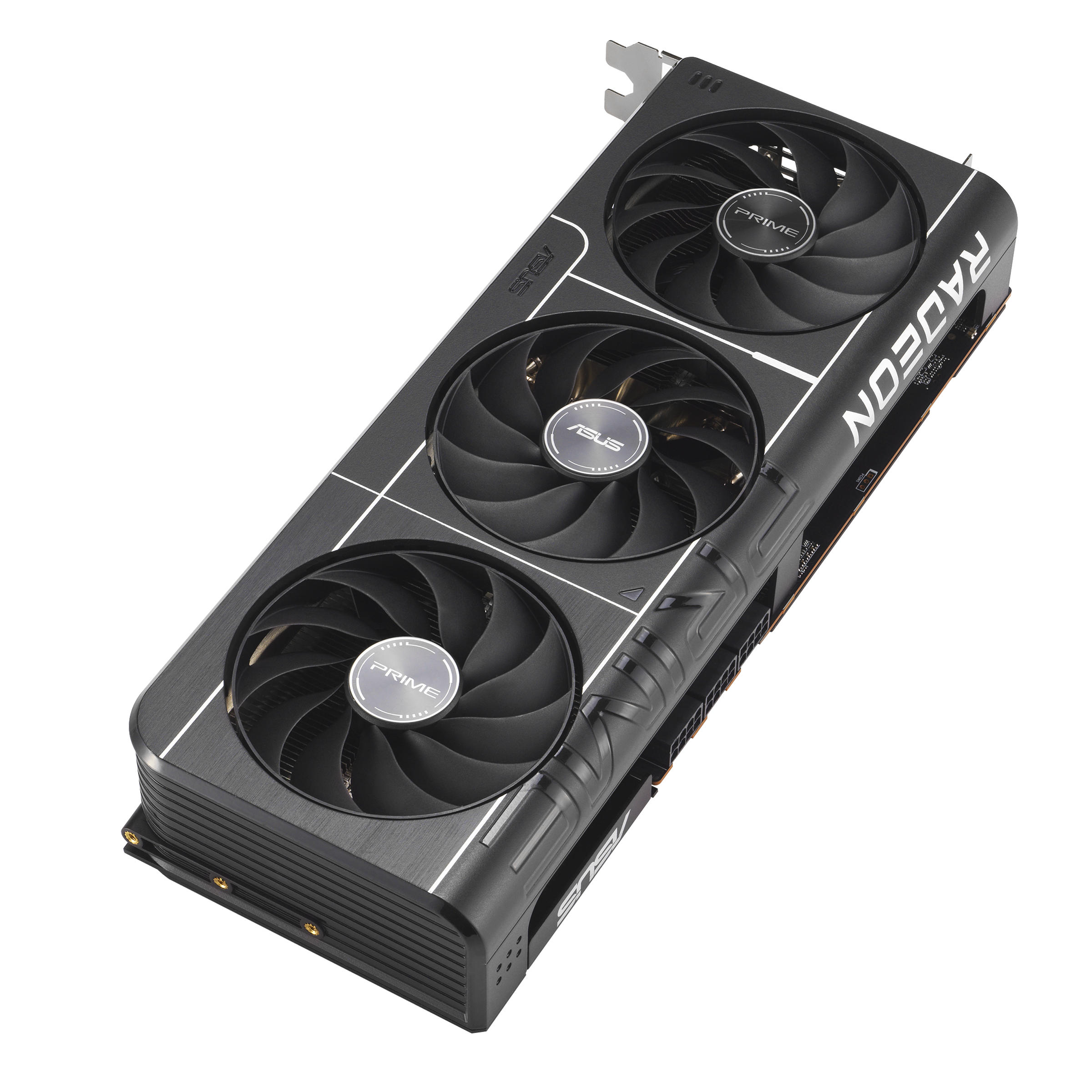 Prime Radeon RX 9070 XT має 2,5-слотову конструкцію з ретельно продуманим розташуванням кожуха, радіатора та теплових трубок, що дозволяє трьом вентиляторам Axial-tech ефективно використовувати вентиляцію бічних панелей корпусу та забезпечувати оптимальну теплову продуктивність.