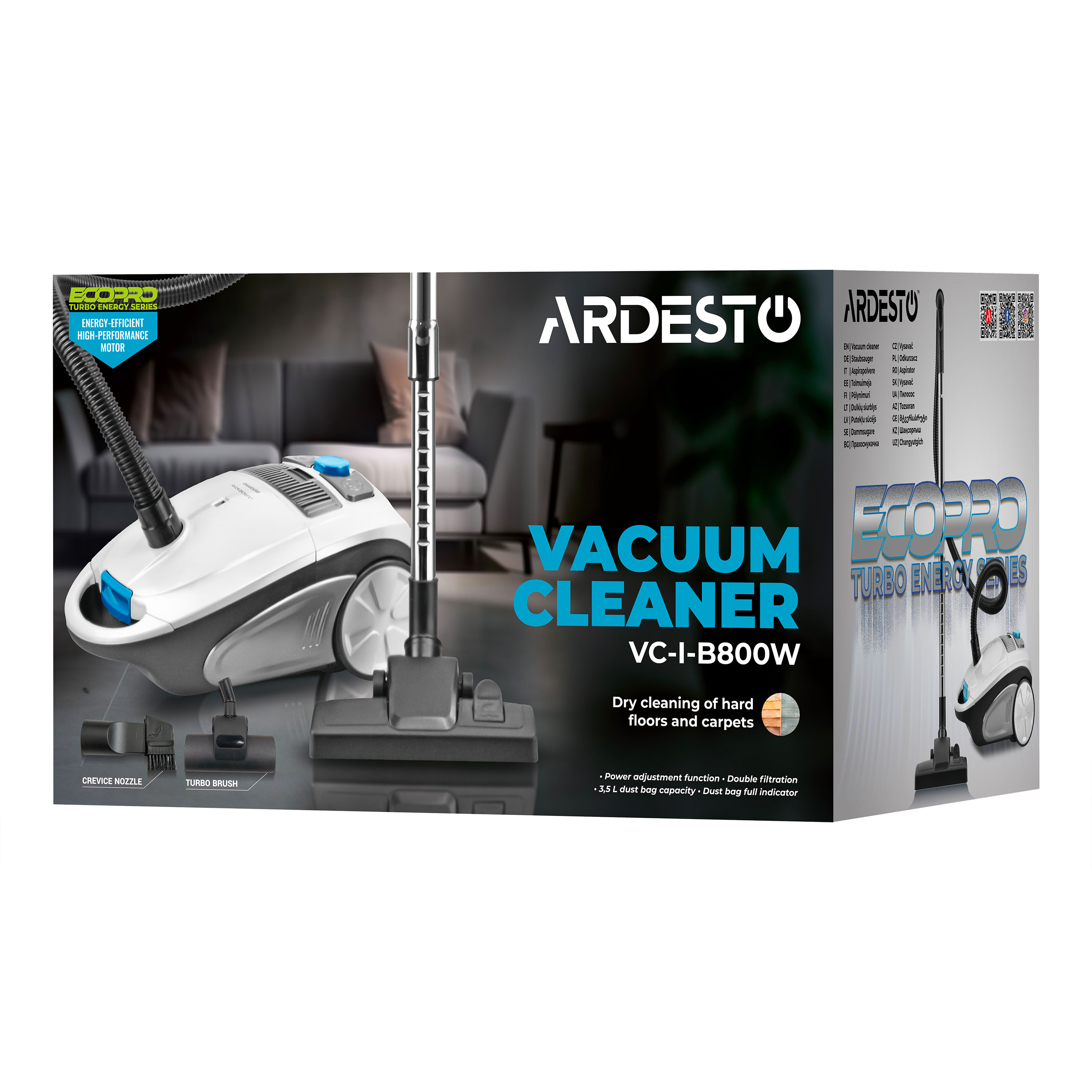 Пилосос Ardesto мішковий, 800Вт, мішок- 3.5л, HEPA, білий
