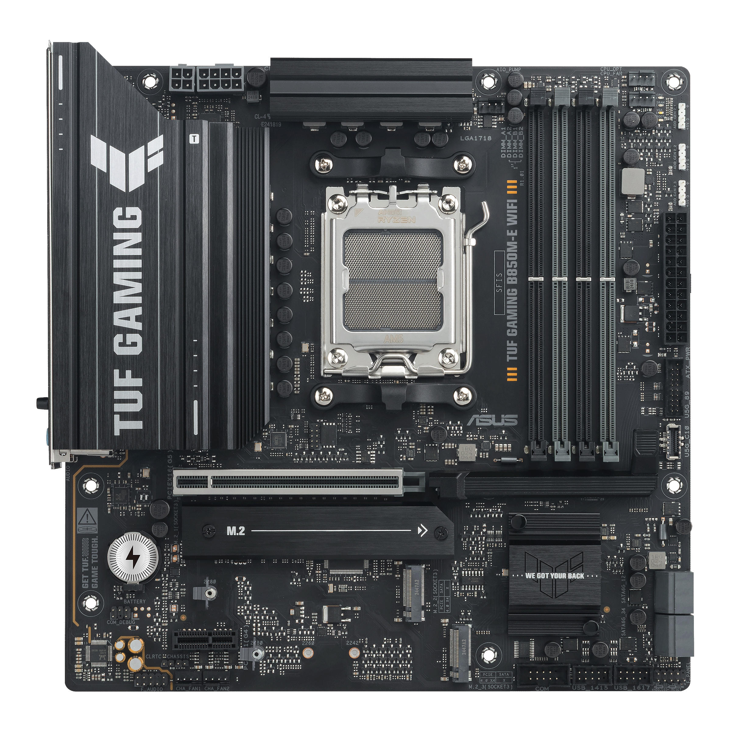 ASUS TUF GAMING B850M-E WIFI увібрала в себе всі основні елементи новітніх процесорів AMD Ryzen і поєднала їх з ігровими функціями та перевіреною довговічністю. Завдяки компонентам військового класу, модернізованій системі живлення та комплексній системі охолодження ця материнська плата перевершує всі очікування, забезпечуючи надійну та стабільну продуктивність для марафонських ігор.