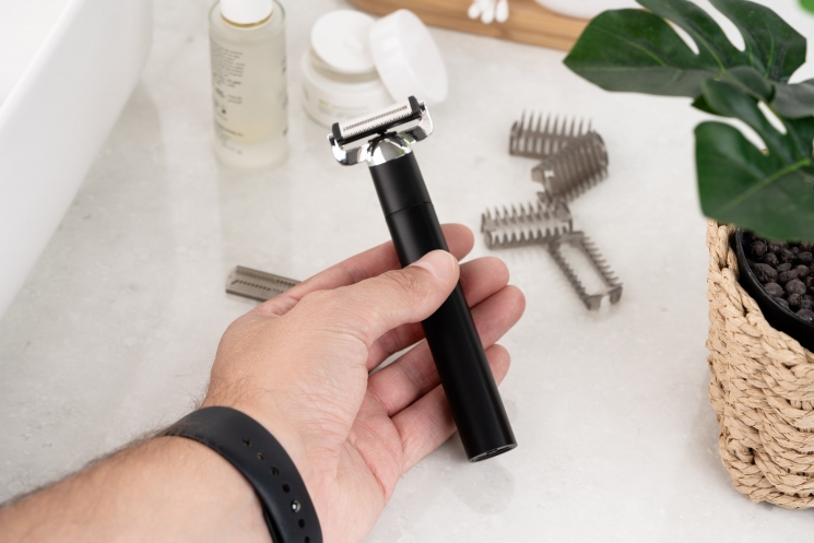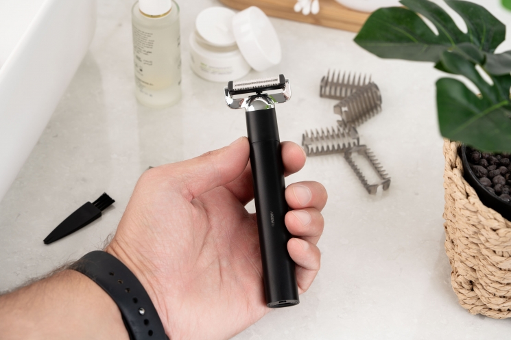 Із легкою щодо догляду та довговічною знімною головкою забезпечено легке чищення. Класом водостійкості IPX5 передбачено надійний захист пристрою від вологи. У комплектоованні є захисна кришка для леза, щіточка для чищення й адаптер для заряджання (вхід 100-240 В, вихід 5 В, 1 A).