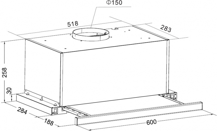 Габарити витяжки (Ш×В×Г): 60×25,8×30 см, діаметр повітропроводу — 150 мм. Це ідеальний вибір для тих, хто шукає надійний та стильний пристрій для своєї кухні.