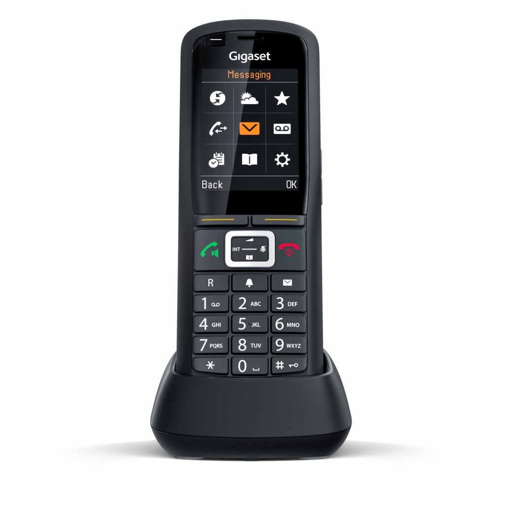 Для всіх, хто шукає телефон, готовий до використання у будь-який час: Gigaset R700H PRO надає хороші послуги – у тому числі в майстернях, на заводах та на будівельних майданчиках. Він міцний та сертифікований за класом захисту IP65. Удари, пил та струмені води не такі ж небезпечні для твердої поверхні, як подряпини та дезінфікуючі засоби: це спрощує очищення – вірусам та бактеріям нема чого боятися.