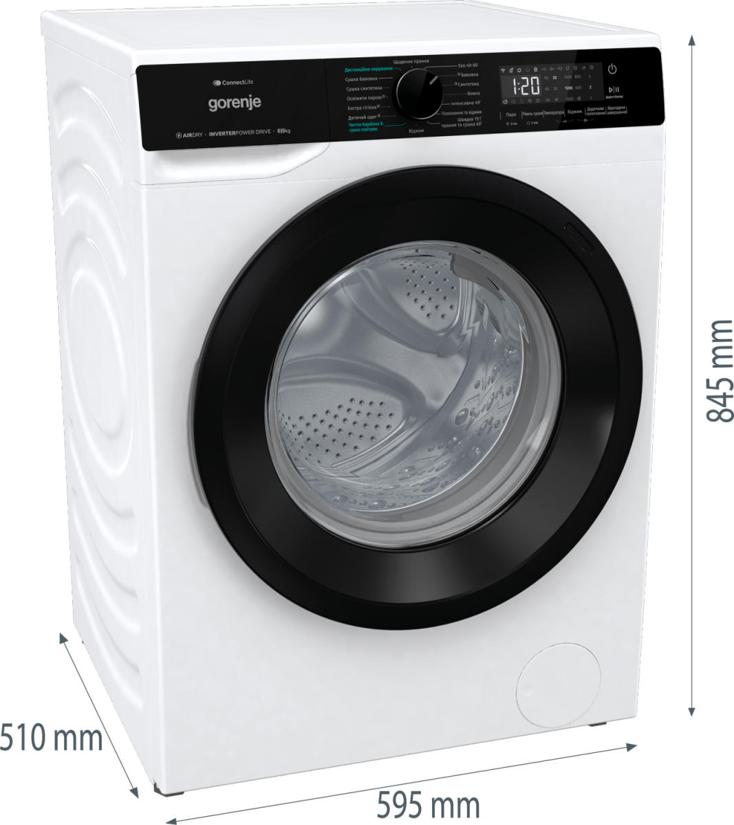Прально-сушильна машина Gorenje фронтальна, 8(5)кг, 1400, A+, 51см, дисплей, інвертор, Wi-Fi, білий