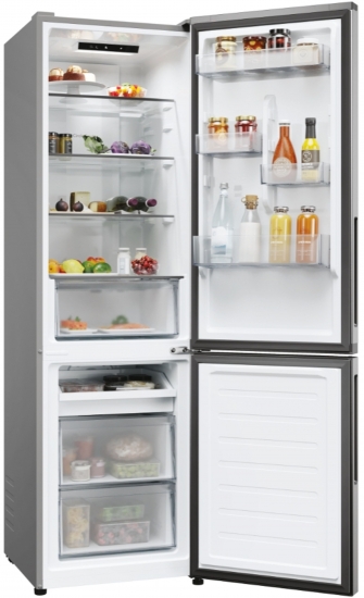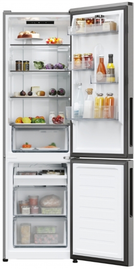 Технологія Total No Frost у обох відділеннях запобігає утворенню льоду, що усуває потребу в ручному розморожуванні та підтримує стабільну температуру. Зона свіжості дозволяє зберігати овочі та фрукти в оптимальних умовах, продовжуючи їх свіжість. Електронне керування з внутрішнім дисплеєм забезпечує точне налаштування температури, а можливість підключення до додатку hOn відкриває додаткові функції та віддалене керування.
