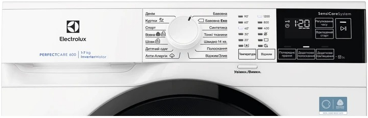Опис Пральна машина Electrolux фронтальна, 7кг, 1200, A+++, 48см, дисплей, інвертор, білий