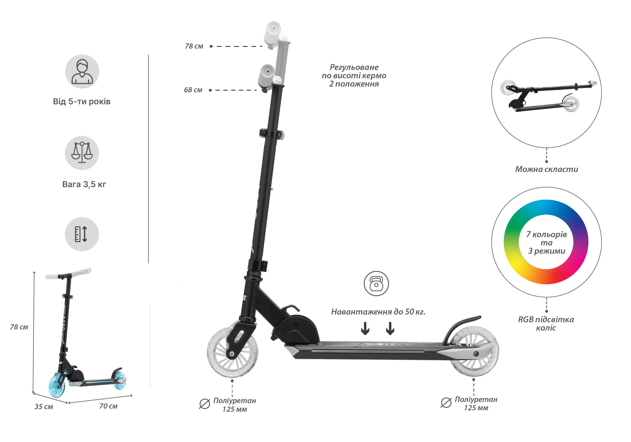Дитячий самокат 2E Aero RGB (AERO-125-RGB)