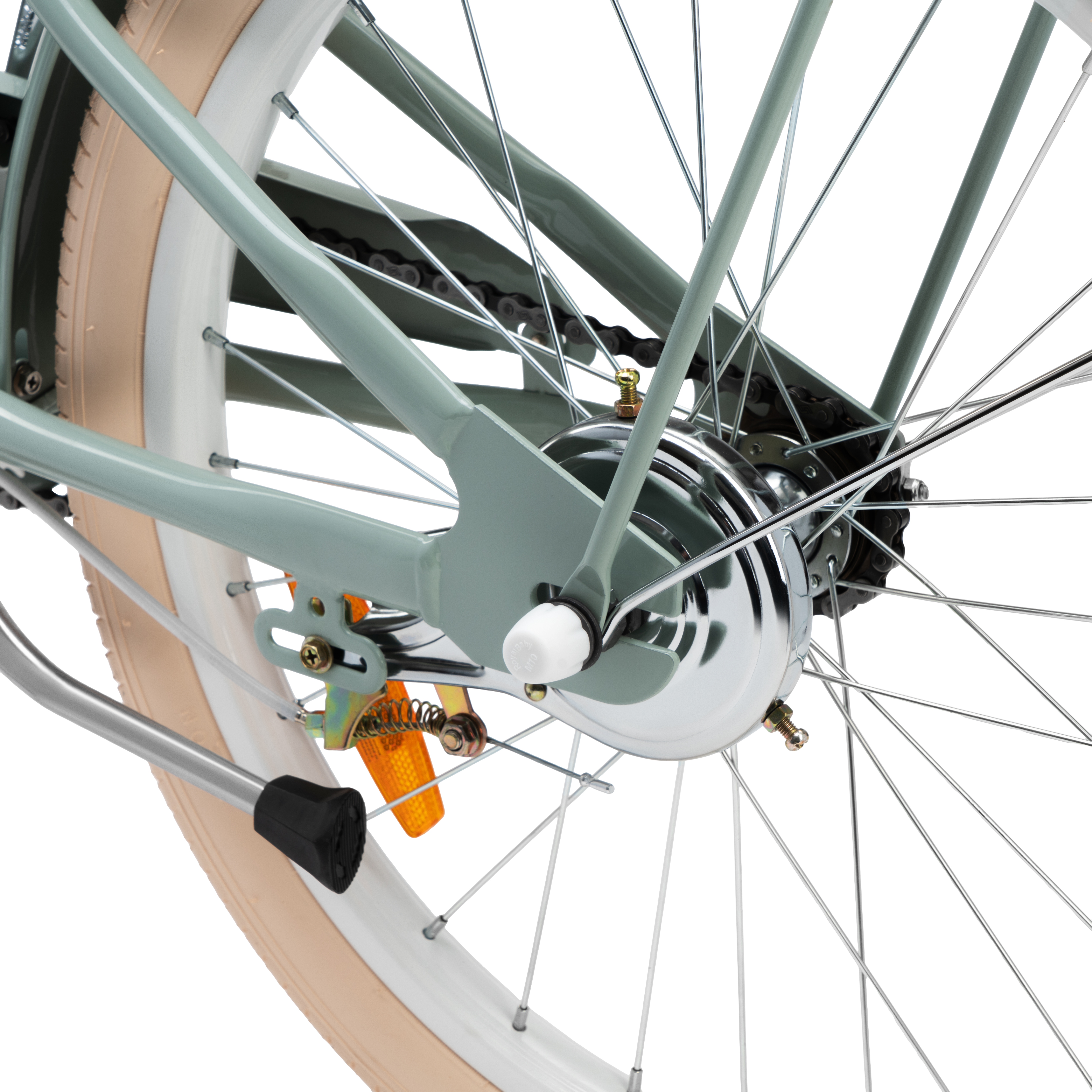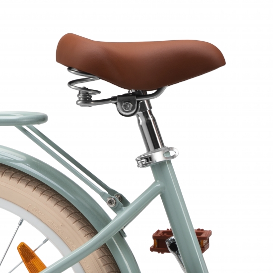 Кермо та сидіння регулюються по висоті в широкому діапазоні. Сидіння м'яке, з покриттям з ECO-шкіри та амортизаційними пружинами. Ручки керма м'які, гумові, з боковим захистом рук при падінні. Ручні гальма, U-Brake на передньому та барабанний механізм на задньому гарантують надійне гальмування. Колесо 20" стальне,  традиційнезі спицями та класичною втулкою на підшипниках. Високий і широкий профіль покришок забезпечать комфортну їзду як по асфальту, так і по нерівностям. Колеса додатково захищені металевими бризговиками, забарвленими у колір велосипеда, що надійно захистить від бруду і бризк.