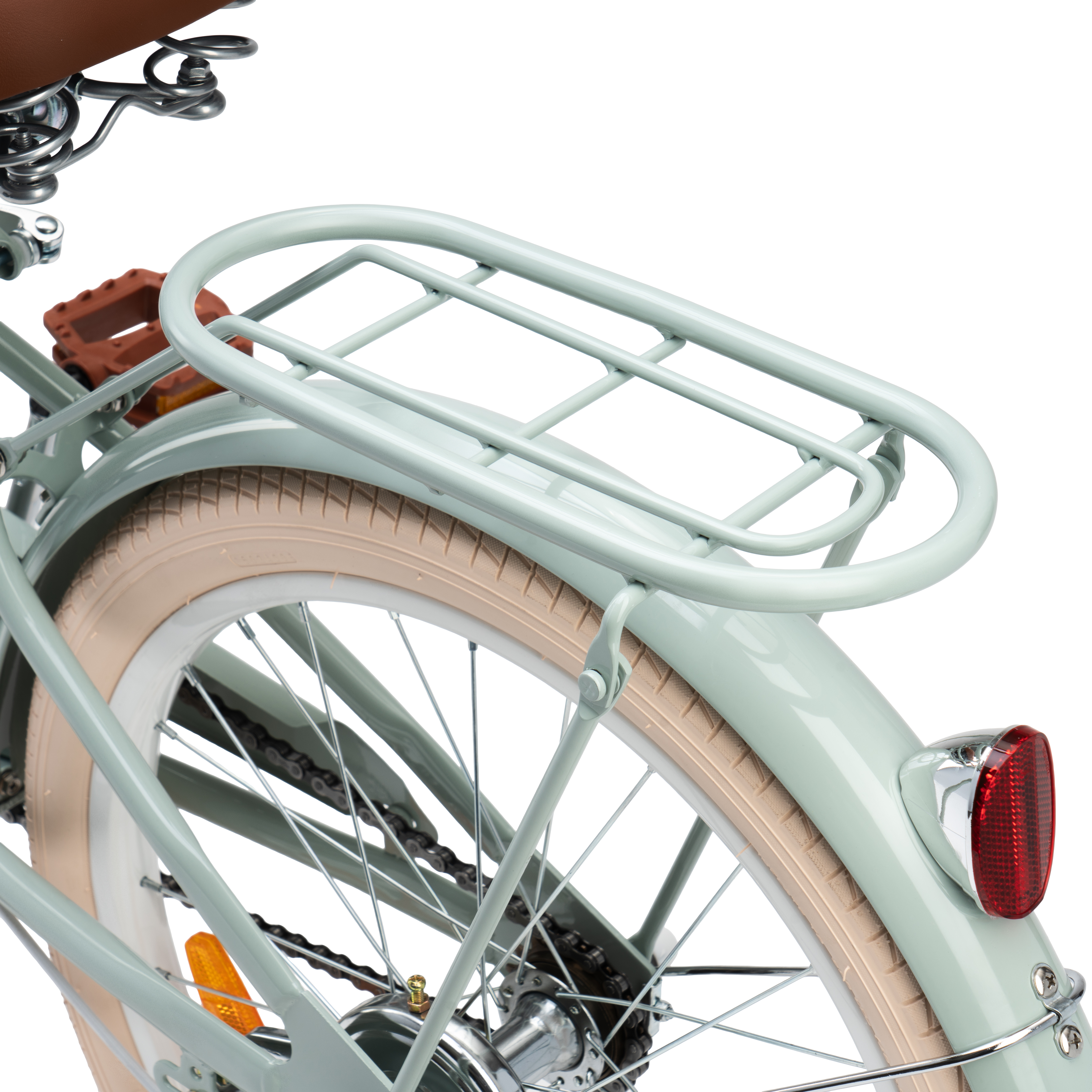 Комплектація велосипеда включає: 2 катафота, дзвіночок на кермо, набір інструментів для збирання та обслуговування велосипеда, корзинку з натурального ротангу, підніжка. (20" НЕ КОМПЛЕКТУЮТЬСЯ тренувальними колесами)