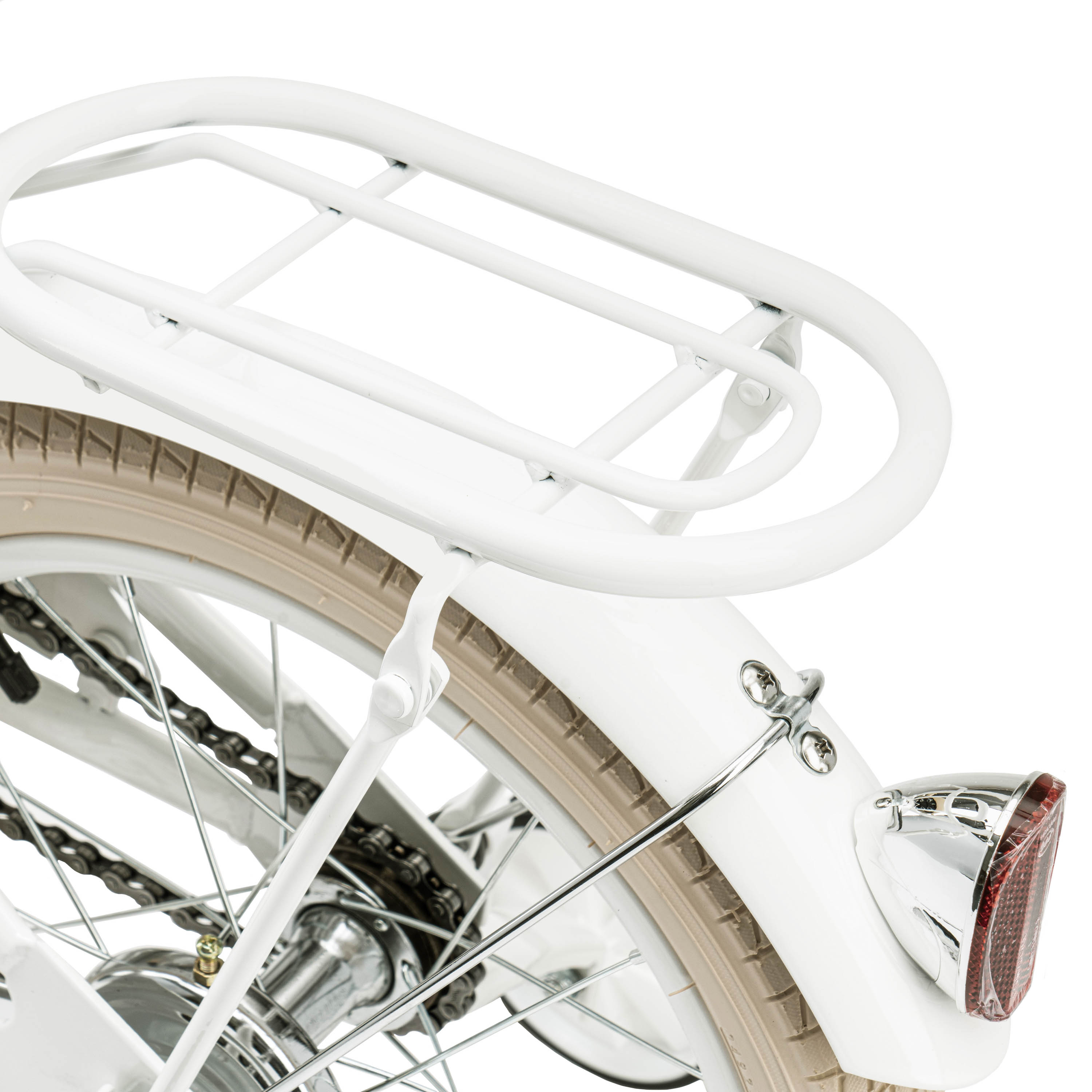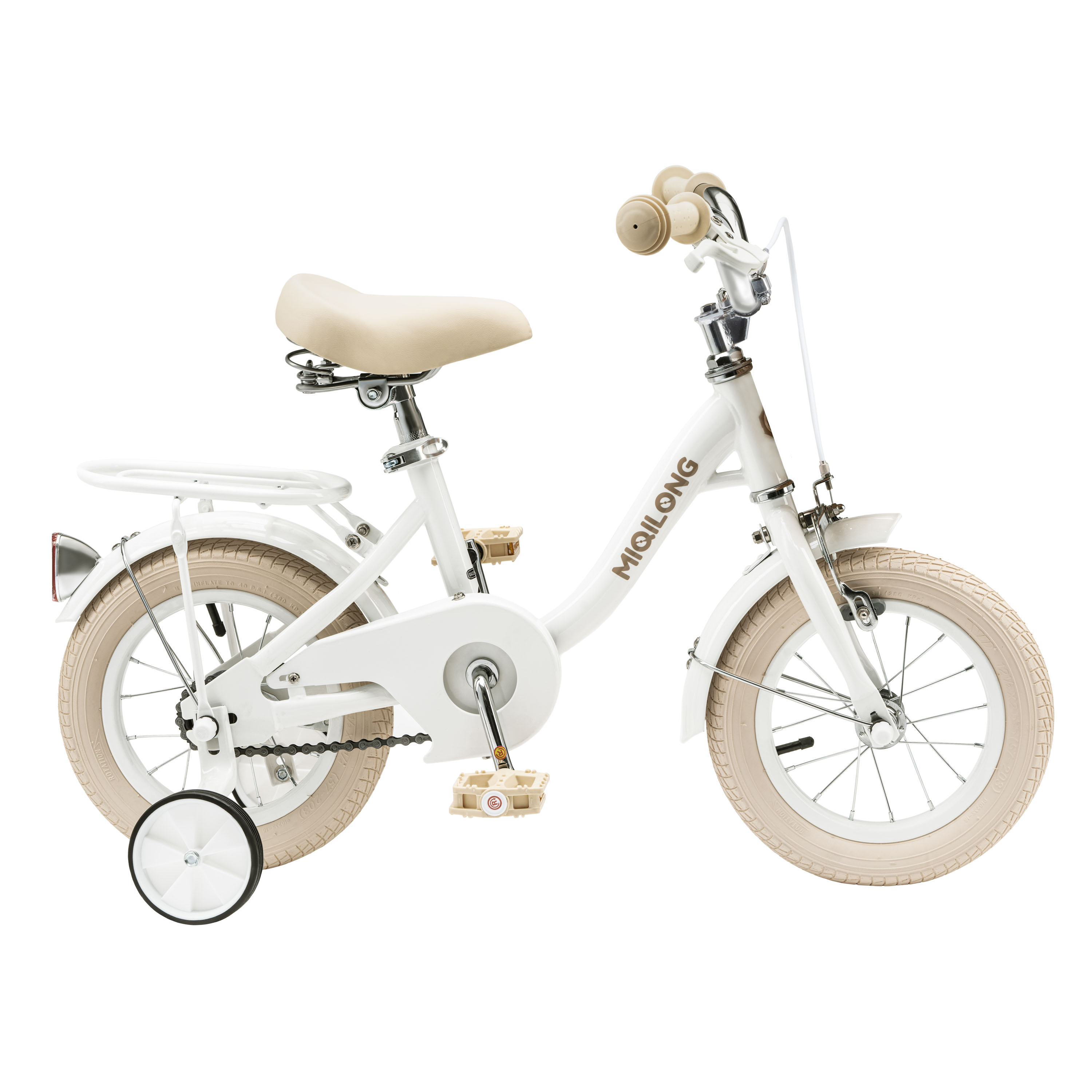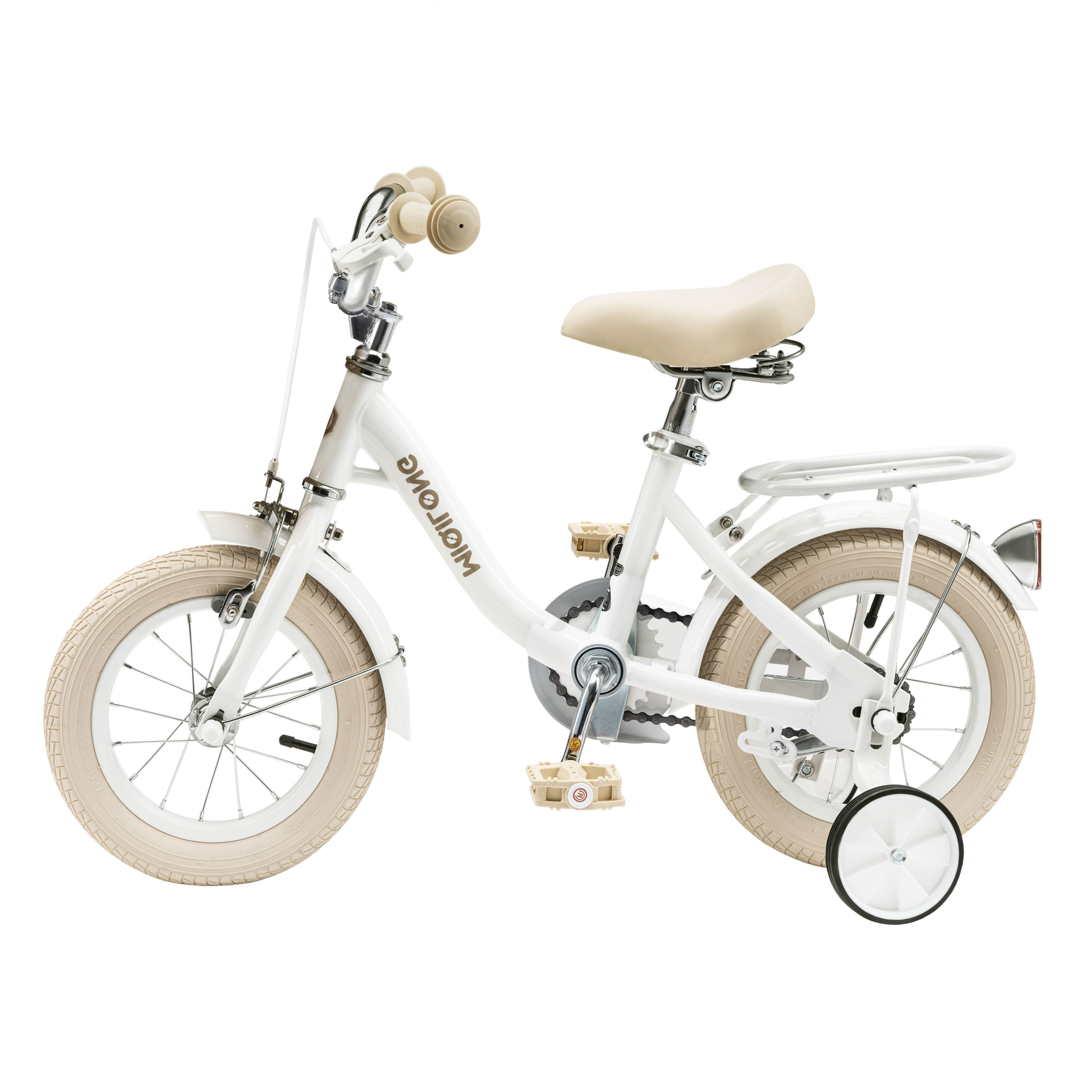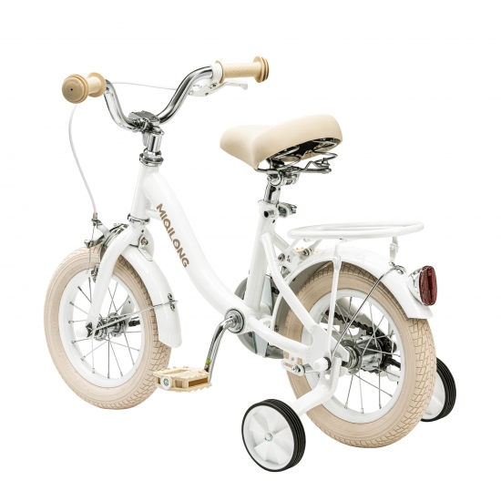 У комплект велосипеда входить: 2 катафота( червоний та білий), дзвіночок на кермо, набір інструментів для збирання та обслуговування велосипеда, кошик з натурального ротангу, набір бокових навчальних коліс.