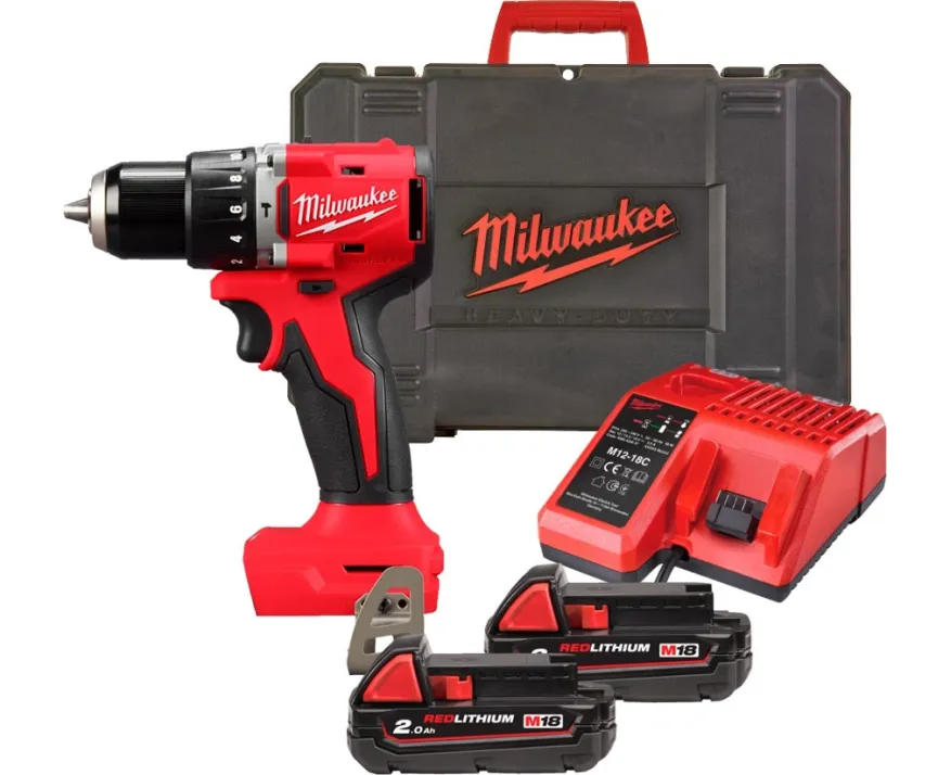Особливості товару Шурупокрут-дриль акумуляторний Milwaukee BLPDRC-202C 18В 2х2А·год 60.5Нм 0·1700об/хв ЗП M12-18C кейс 1.5кг