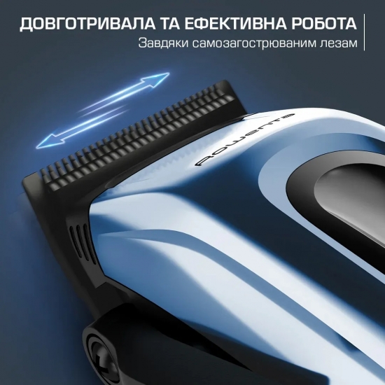 Опис Машинка для стрижки Rowenta Barber Experience, для голови, мережа+акум., роторний мотор DC, насадок-12, нержавіюча сталь з покриттям DLC, синій