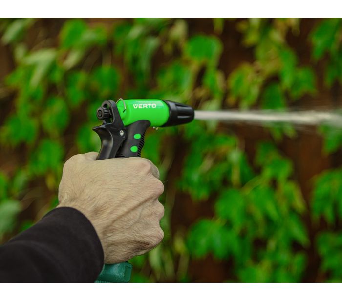 Зрошувач ручний Verto, пістолетний, 1/2-3/4, 2 функції, регулювання напорурегулювання напору / розпилу води, тримач двокомпонентний