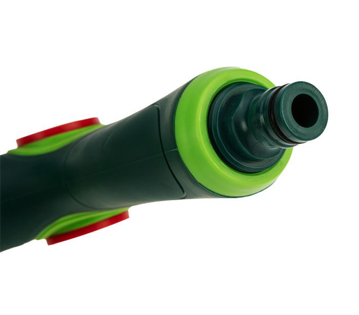 Пістолетний дощувач з регульованим розпиленням 15G7017 від VERTO з плавним регулюванням розпилення за допомогою великого пальця. Пістолет оснащений функцією вибору типу розпилення, що дозволяє підібрати його потужність відповідно до виконуваної роботи. Чітке маркування полегшує вибір відповідного типу розпилення. Рукоятка ергономічної форми добре лежить у руці і не вислизає, що робить роботу більш комфортною. Дощувач виготовлений із ABS-пластику, частково покритого TPR-гумою.