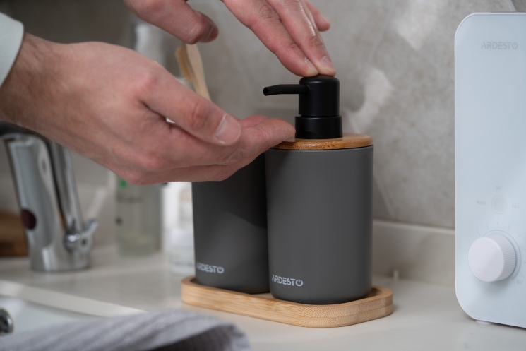 | Розміри | 7,6x17,4 см диспенсер, 7,6x11 см склянка, 16,3x8,9x1,5 см підставка |