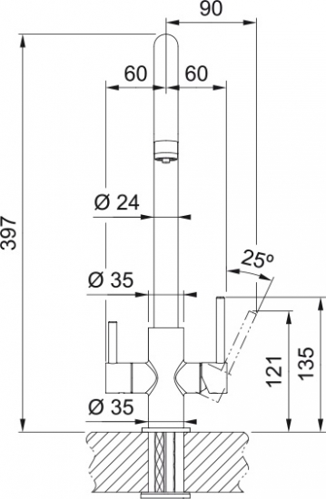 - Тип: Змішувач для кухні з фільтром 1+1