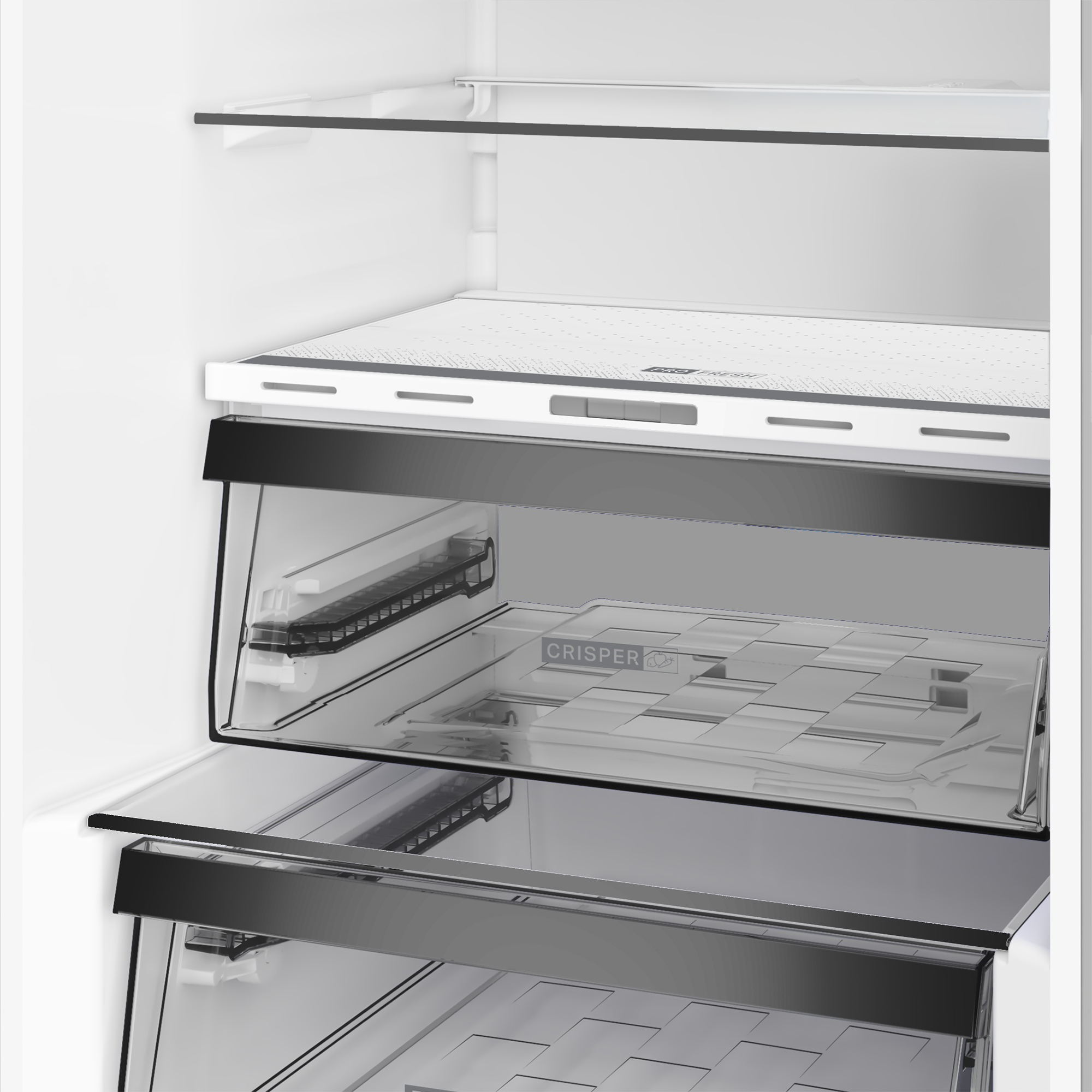 Дві незалежні системи No Frost гарантують ідеальні умови для зберігання продуктів і нескінченний комфорт у використанні холодильника. Система No Frost в холодильній камері автоматично встановлює рівень вологості і температуру, щоб виключити пересушування продуктів. No Frost в морозильній камері виключає утворення льоду і інею, а значить-Вам не потрібно буде витрачати час на її розмороження.